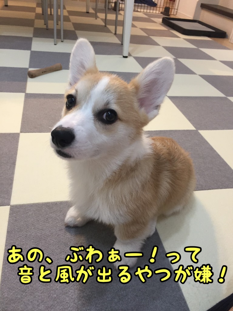 コーギーむぎちゃん ぶわぁー!って風が出るのは嫌い!