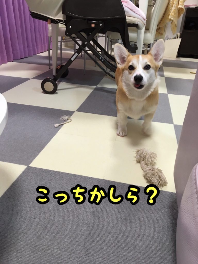 そして、ごらんのとおり最終的にはボールで遊んでいました。どちらも好きなようで、投げたものと違うものを途中で持ってくることがあります。(・Д・`)