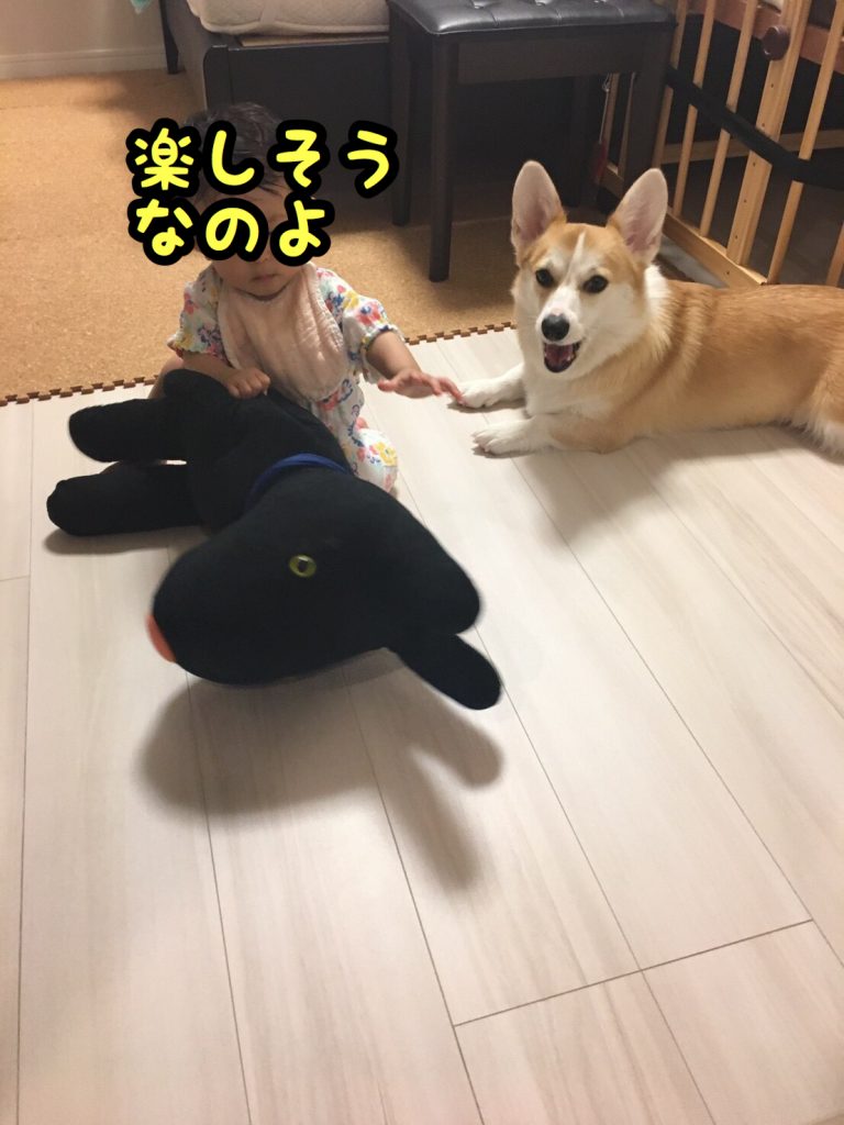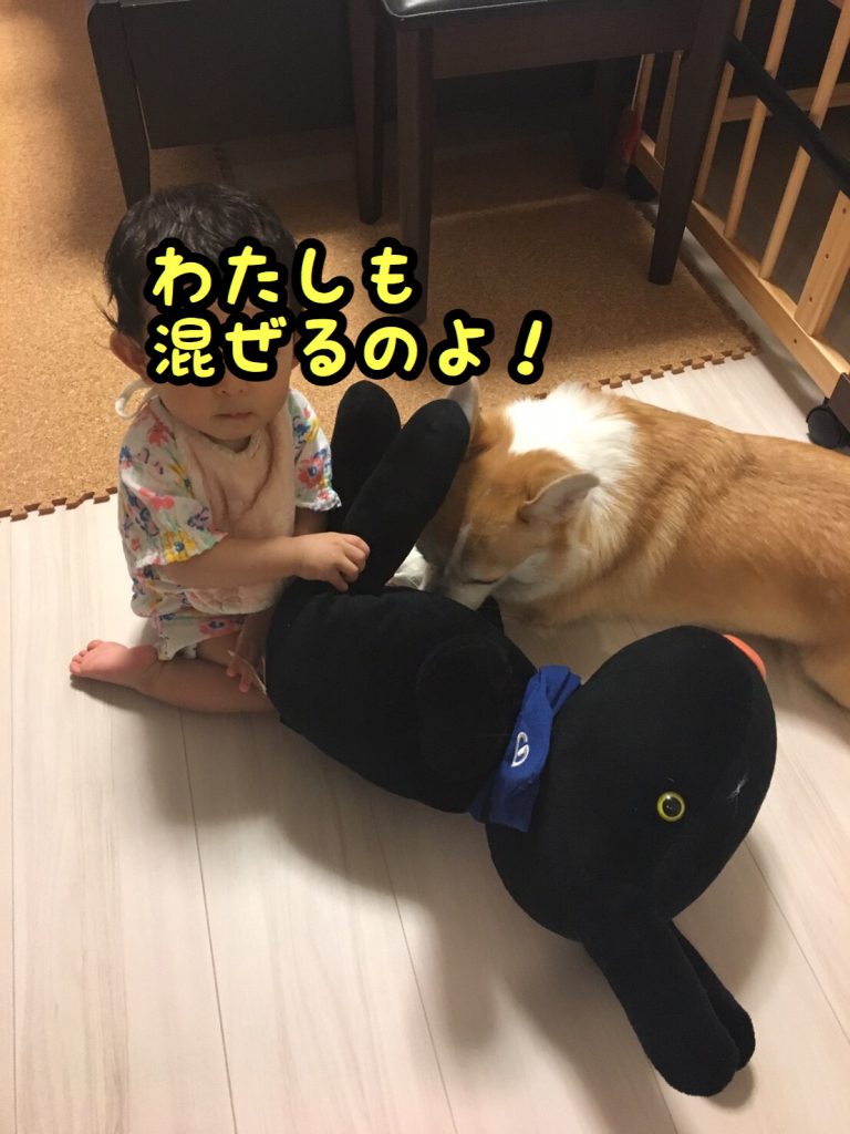 むすめちゃんはむぎちゃんに飽きてしまったのか、人形を触りに行きました(/・ω・)/