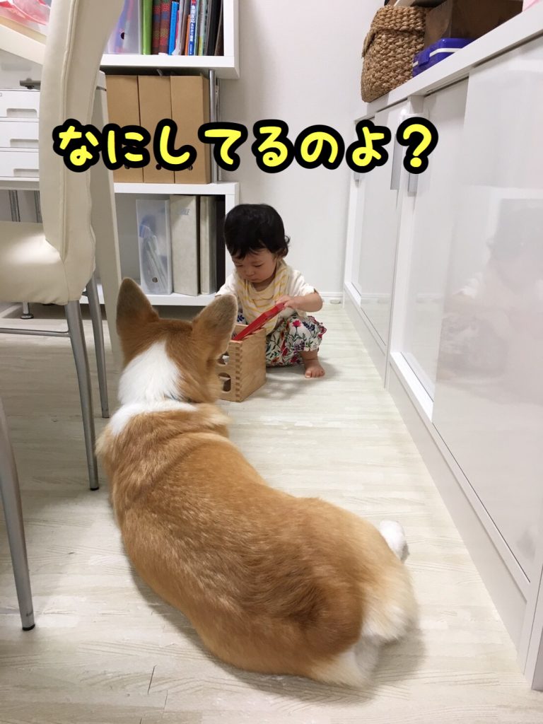むすめちゃんのおもちゃが気になって仕方がないむぎちゃんでした(*´ω`)