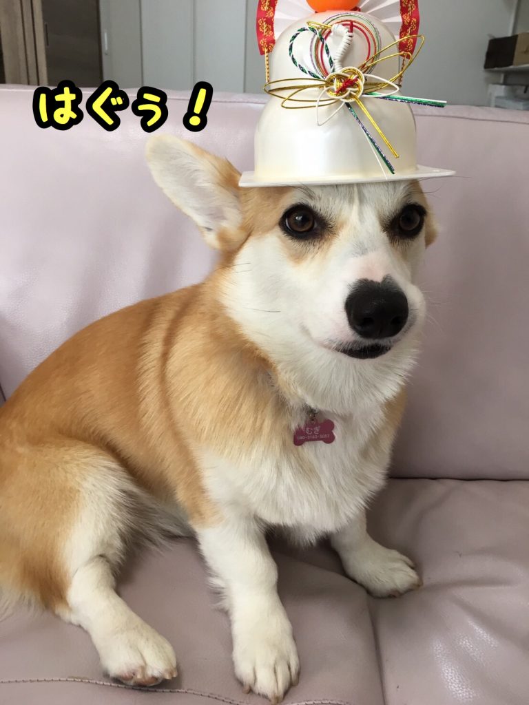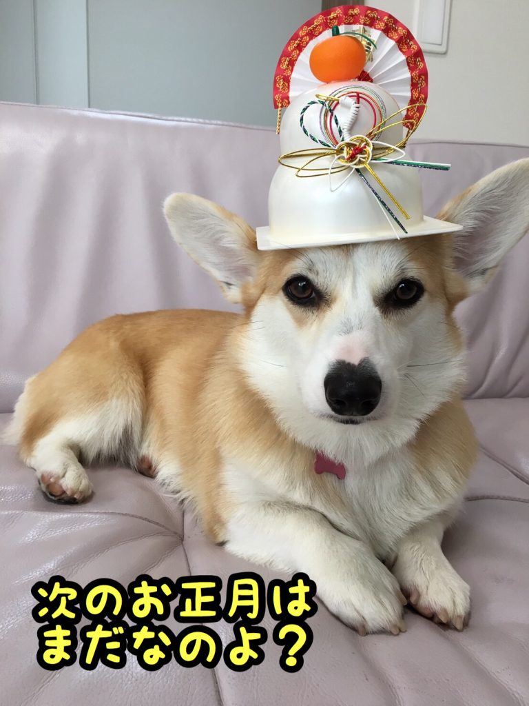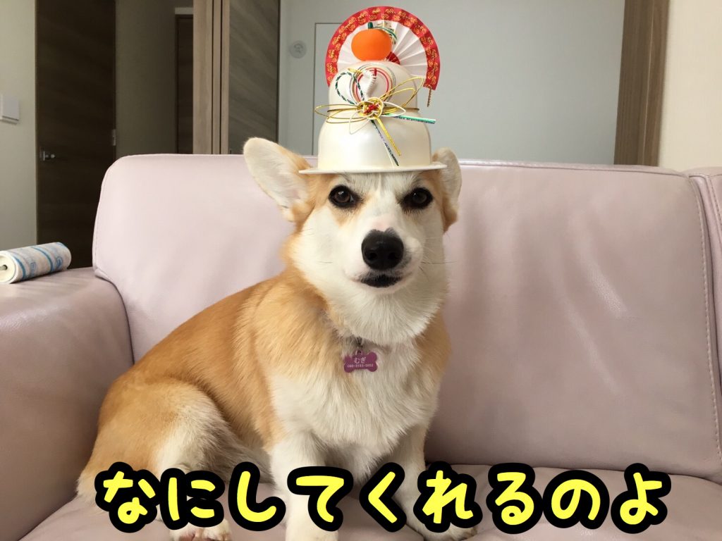 中くらいの鏡餅ならむぎちゃんのあたまに乗せられるんです(´ω`*)