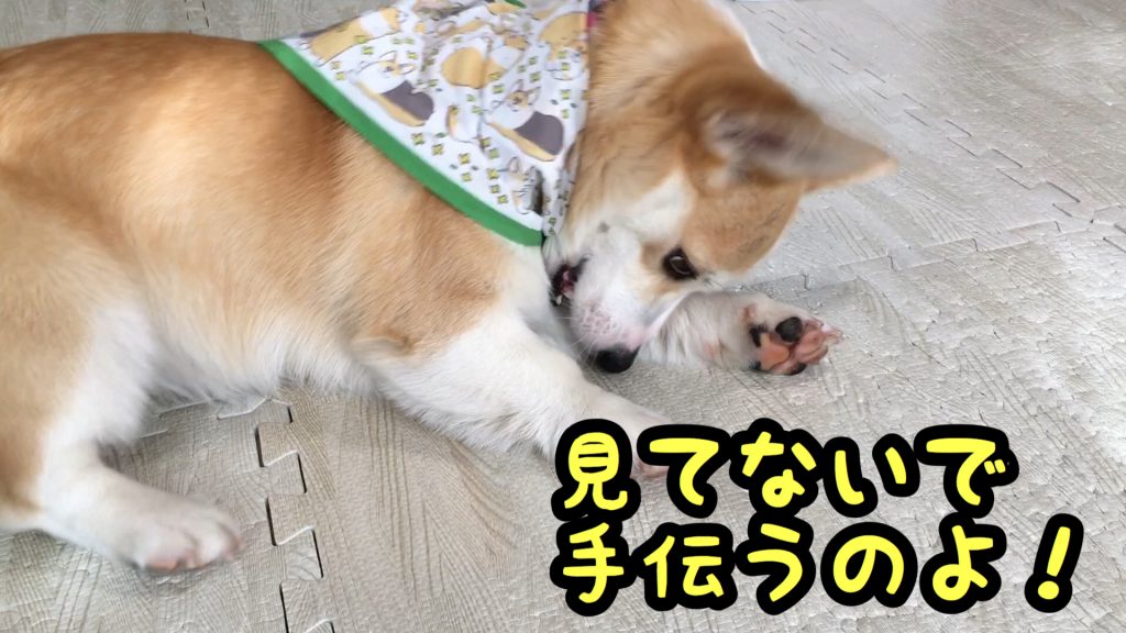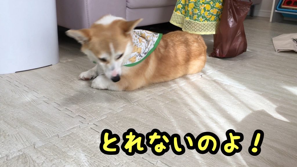 服だったらいろんなところを噛めるのですが、バンダナだと意外につかめないようです( *´艸`)