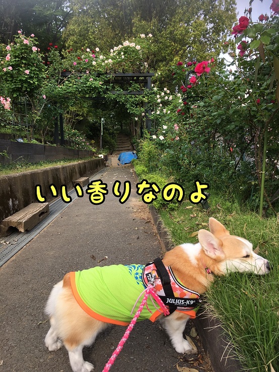 バラ満開に大満足なむぎちゃんでした( *´艸`)