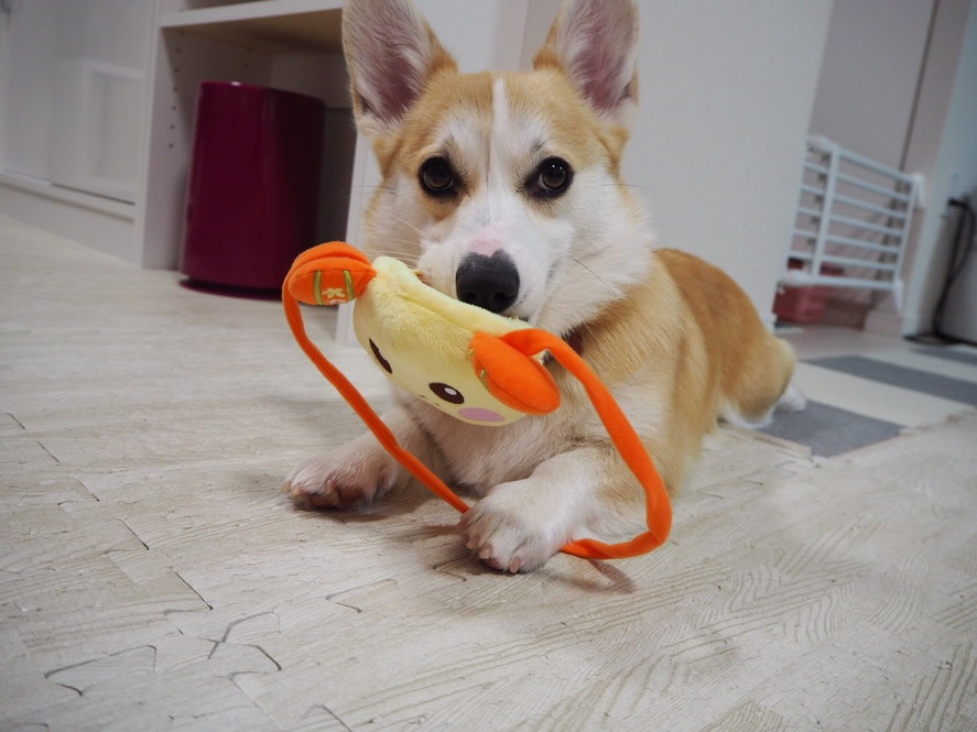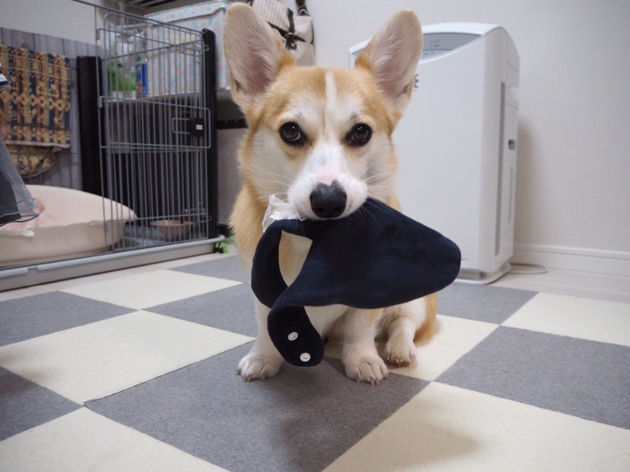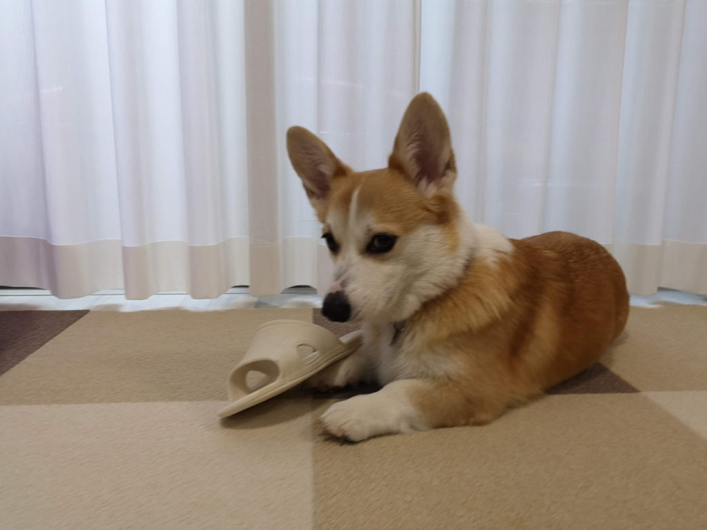 先日コーギースマイルについて書かせていただきましたが、いたずら真っ最中のむぎちゃんは、コーギースマイルからかけ離れた表情を見せてくれます。