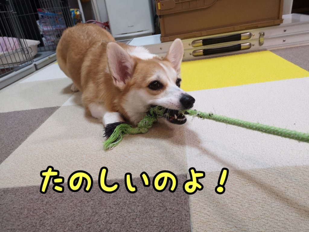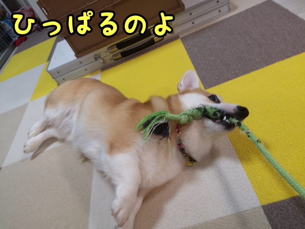 家での遊びの定番といえば、ロープですよね。むぎちゃんは相変わらずロープが大好きです。