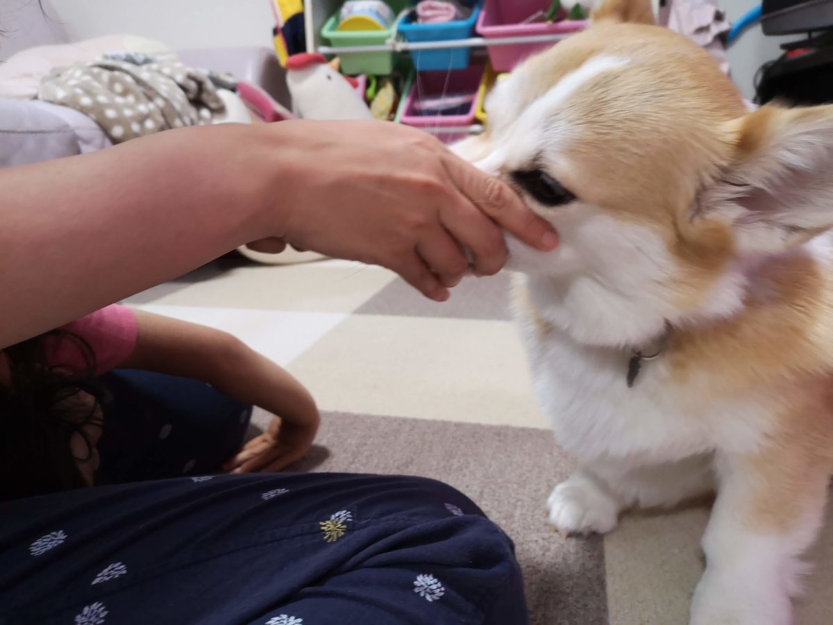 指先や手のひらで、マズル周辺を触ってみて、おとなしく触らせてくれたら、すぐにご褒美を上げます。何度か繰り返すと覚えてくれるでしょう。どちらかというと、食いしん坊な子は覚えが早いかもしれません。