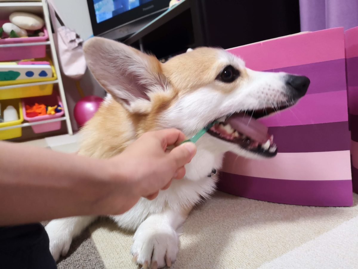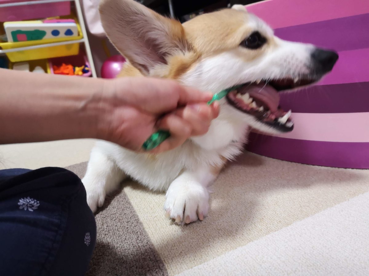 ちなみに、犬用の歯ブラシなどもあるのですが、わが家では遊び感覚で歯磨きをしているので、歯ブラシが壊されることもあります。