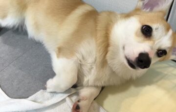 さて、コーギーむぎちゃんは、やめたくてもやめられないみたいです( *´艸`)
