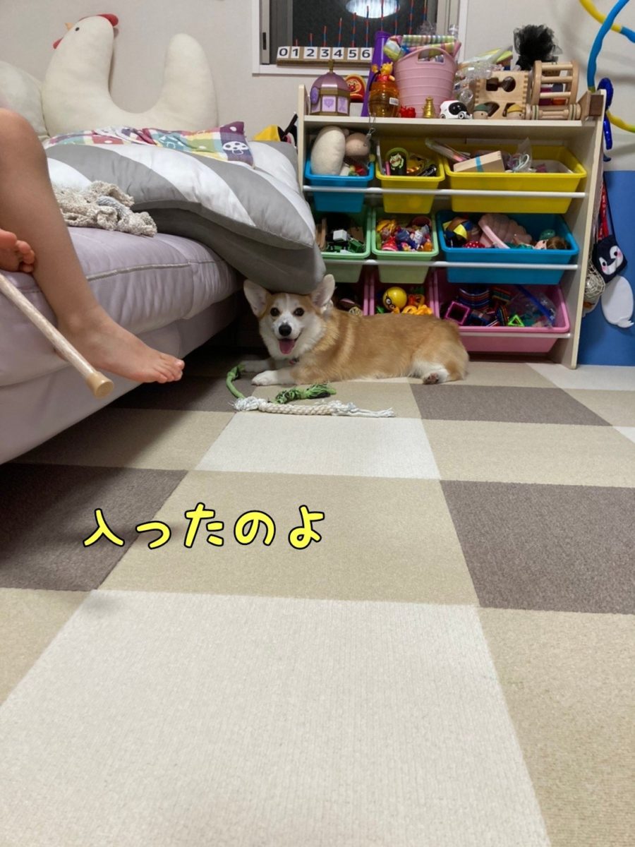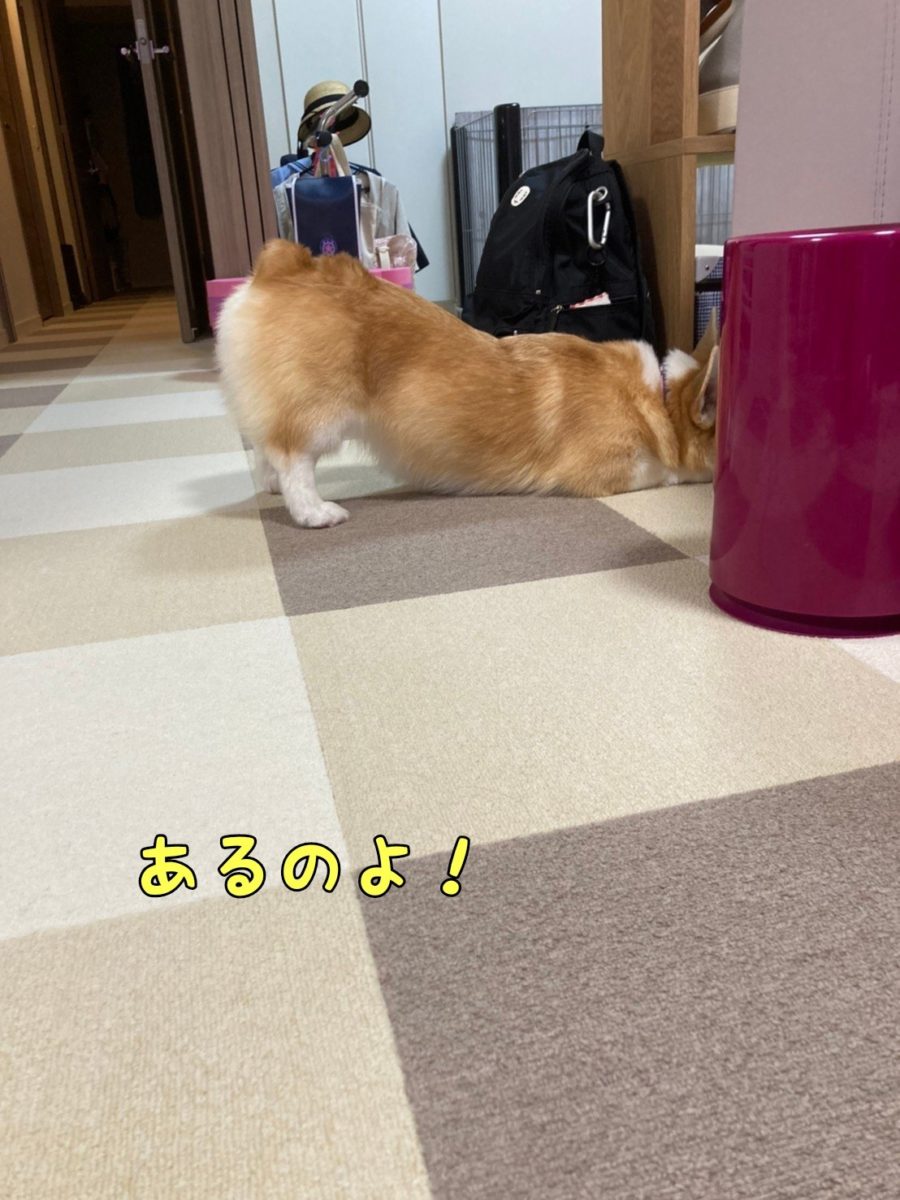 さて、コーギーむぎちゃんは隙間に入ったのを取りたいようです(/・ω・)/