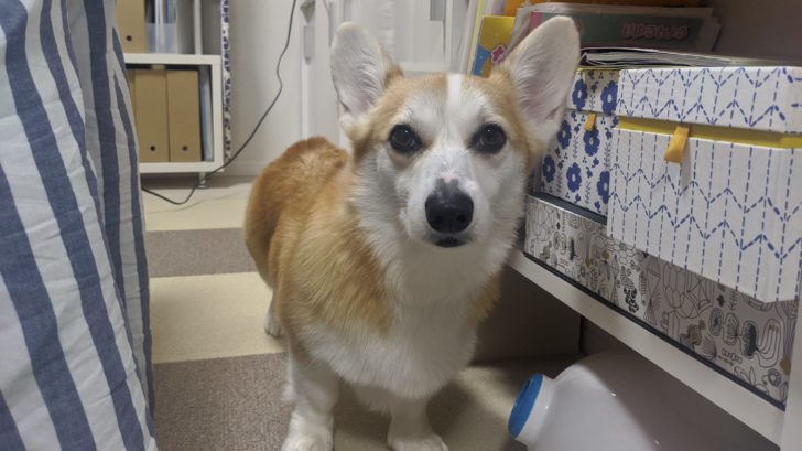 さて、コーギーむぎちゃんは邪魔したいわけではないようです(/・ω・)/
