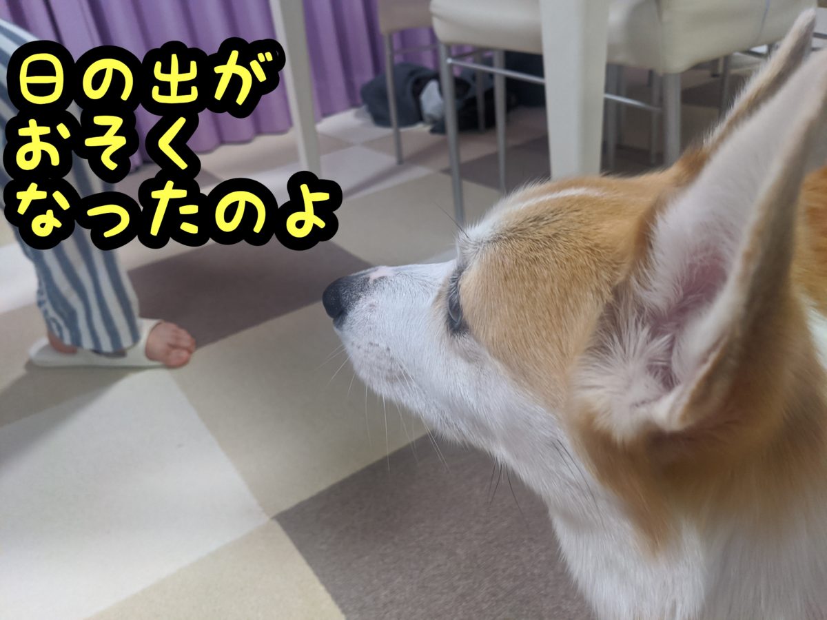 お散歩のスタート時間が徐々に遅くなるのが不満な早起きむぎちゃんでした((´∀`*))