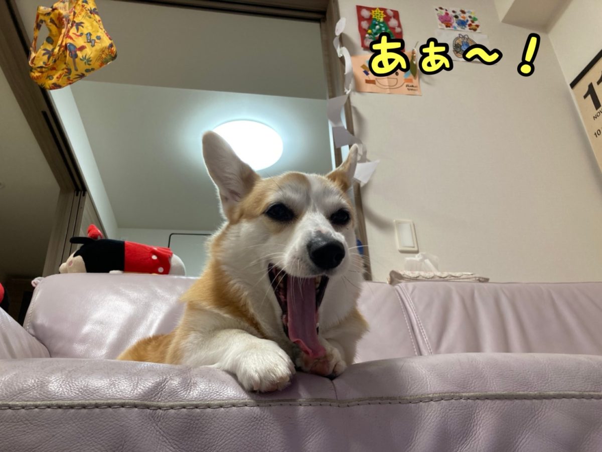 さて、コーギーむぎちゃんはでっかいあくびが止まらないようです(/・ω・)/