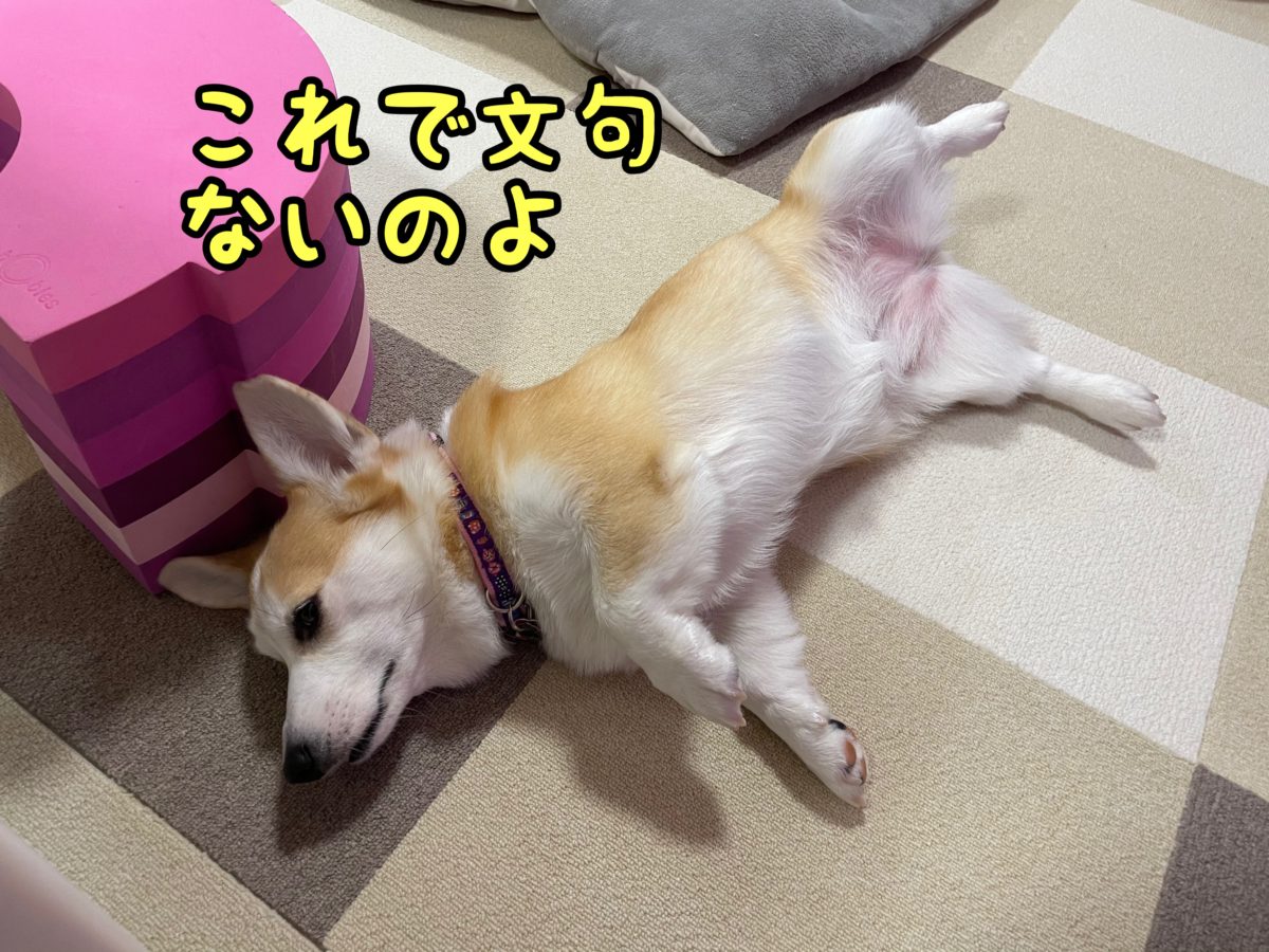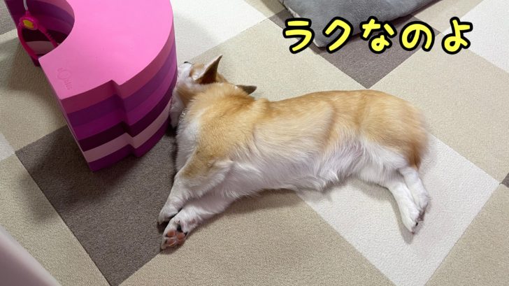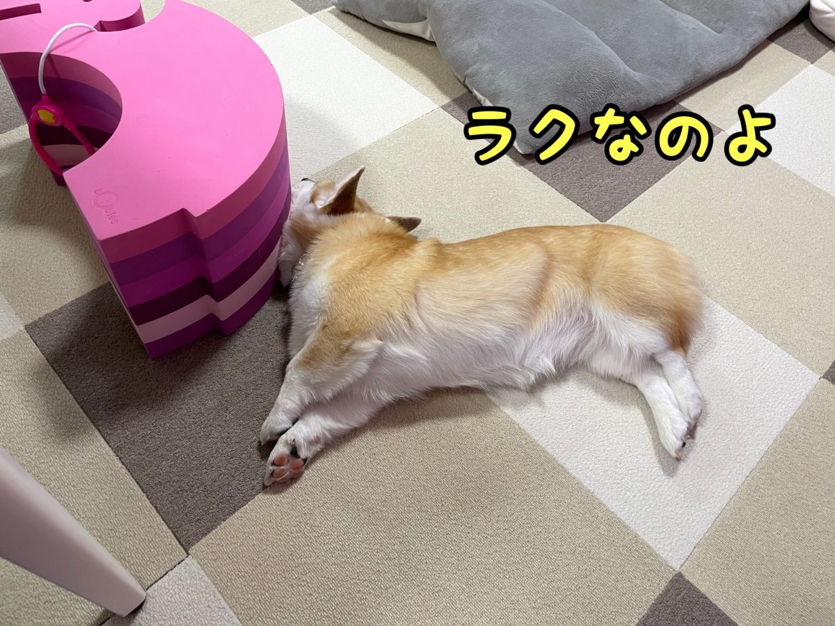 さて、コーギーむぎちゃんは楽なようです(/・ω・)/
