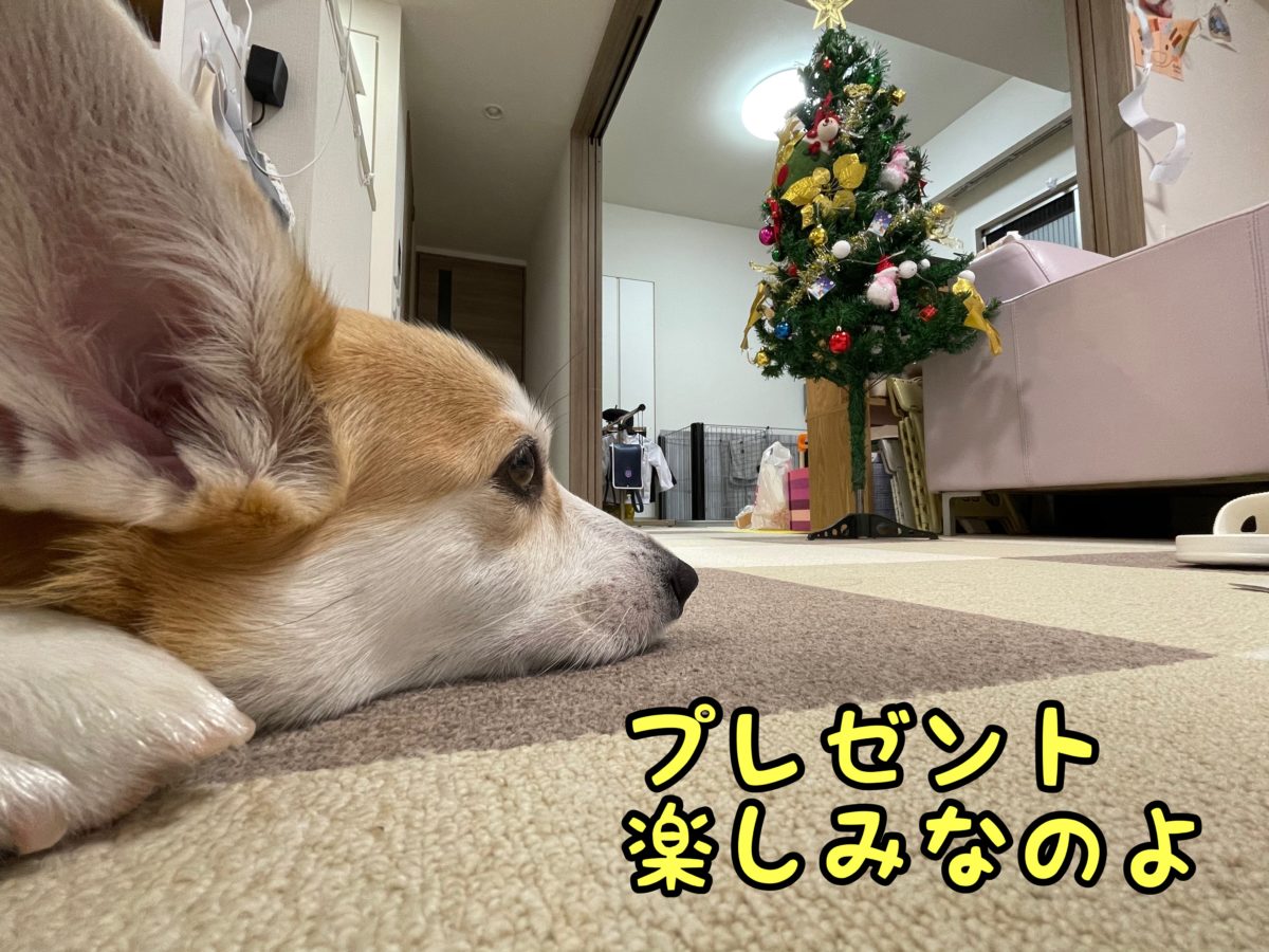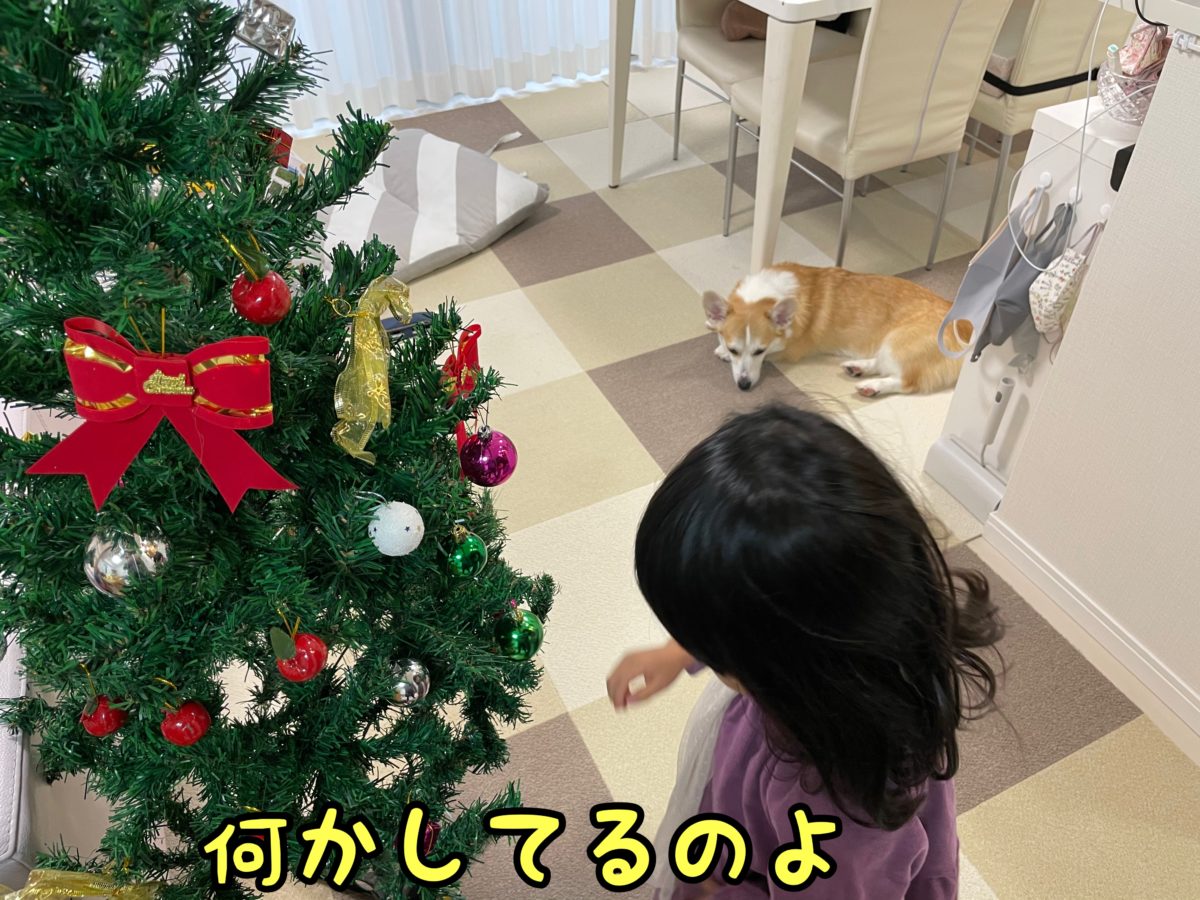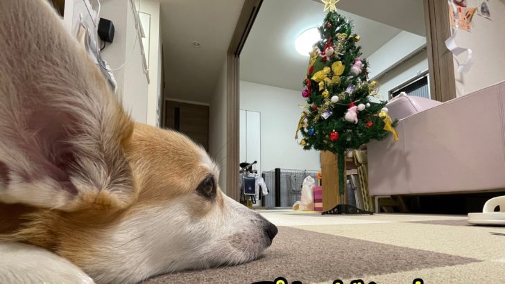 さて、コーギーむぎちゃんはクリスマスの準備を見るようです(/・ω・)/
