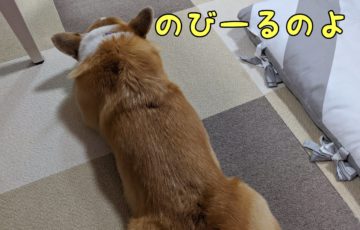 さて、コーギーむぎちゃんは抑え込んでいるようです(/・ω・)/