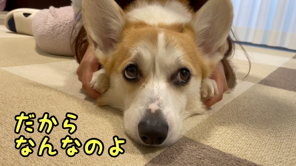 さて、コーギーむぎちゃんはマリオネット状態になるようです(/・ω・)/