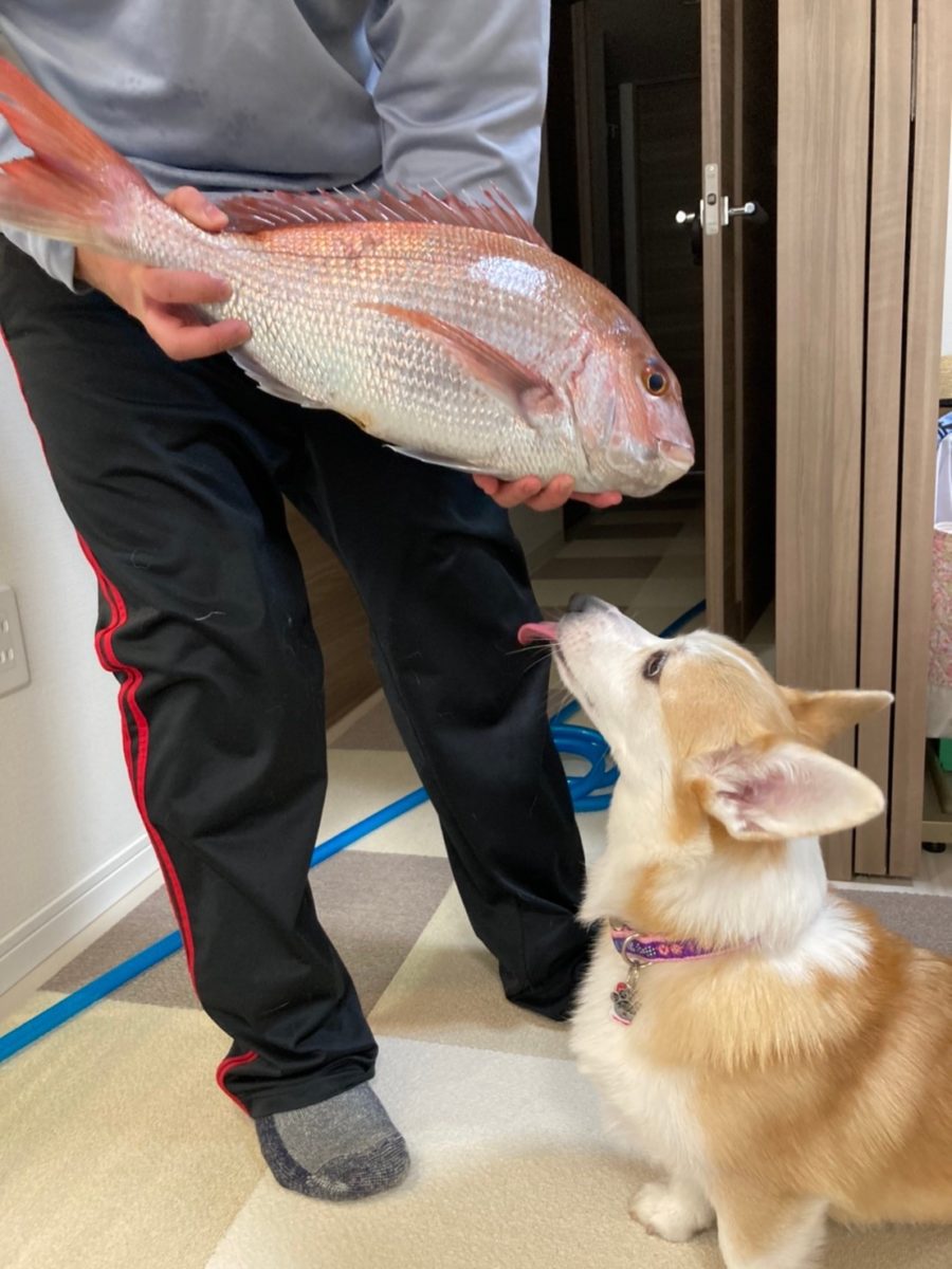真鯛を見つけたむぎちゃん(´・ω・`)