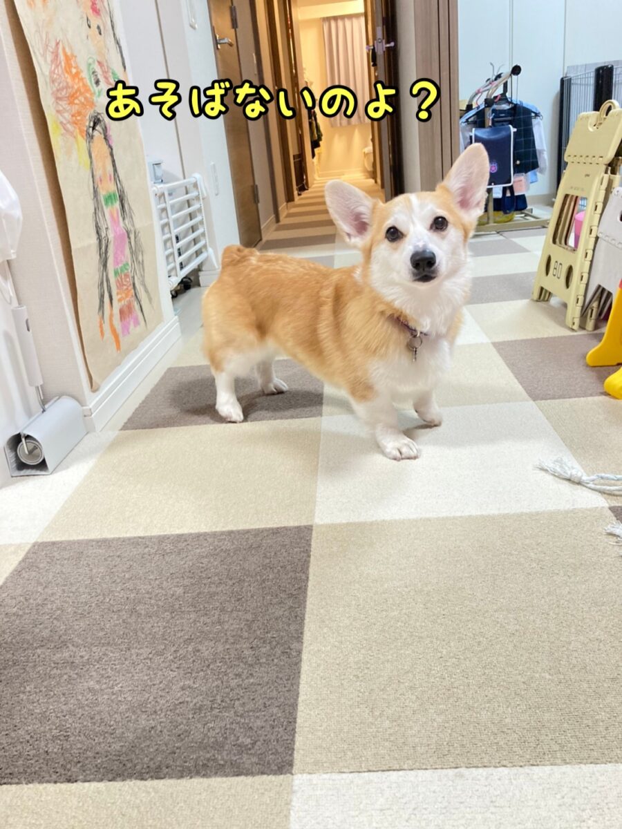 さて、コーギーむぎちゃんはずいずいっとくるようです(/・ω・)/
