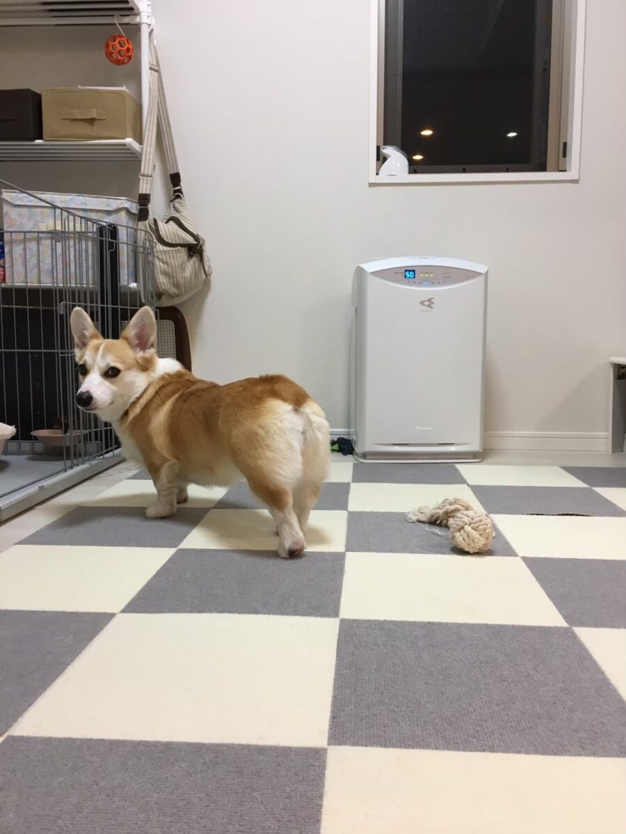 嫌な予感に逃げるむぎちゃん(´・ω・`)