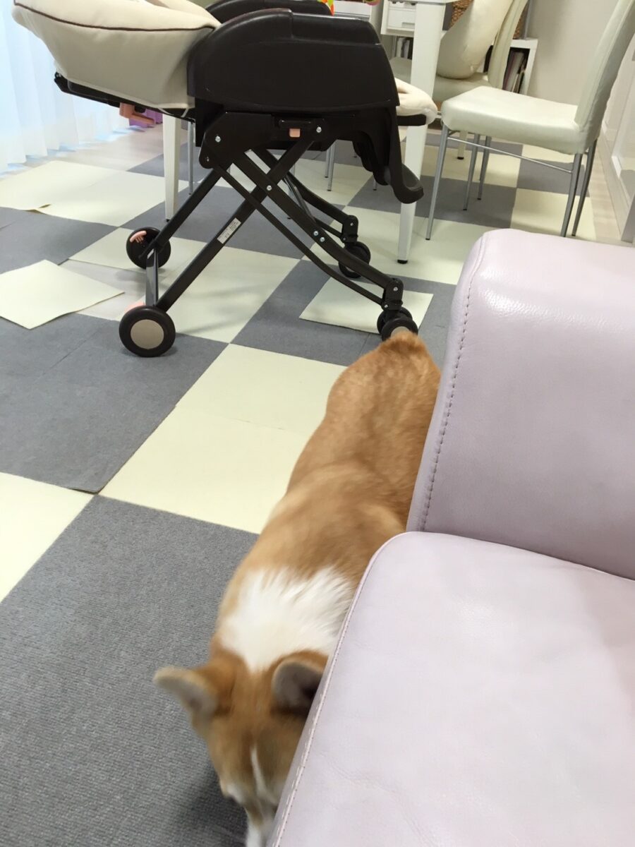 なんかソファにくっついてるむぎちゃん(´・ω・`)