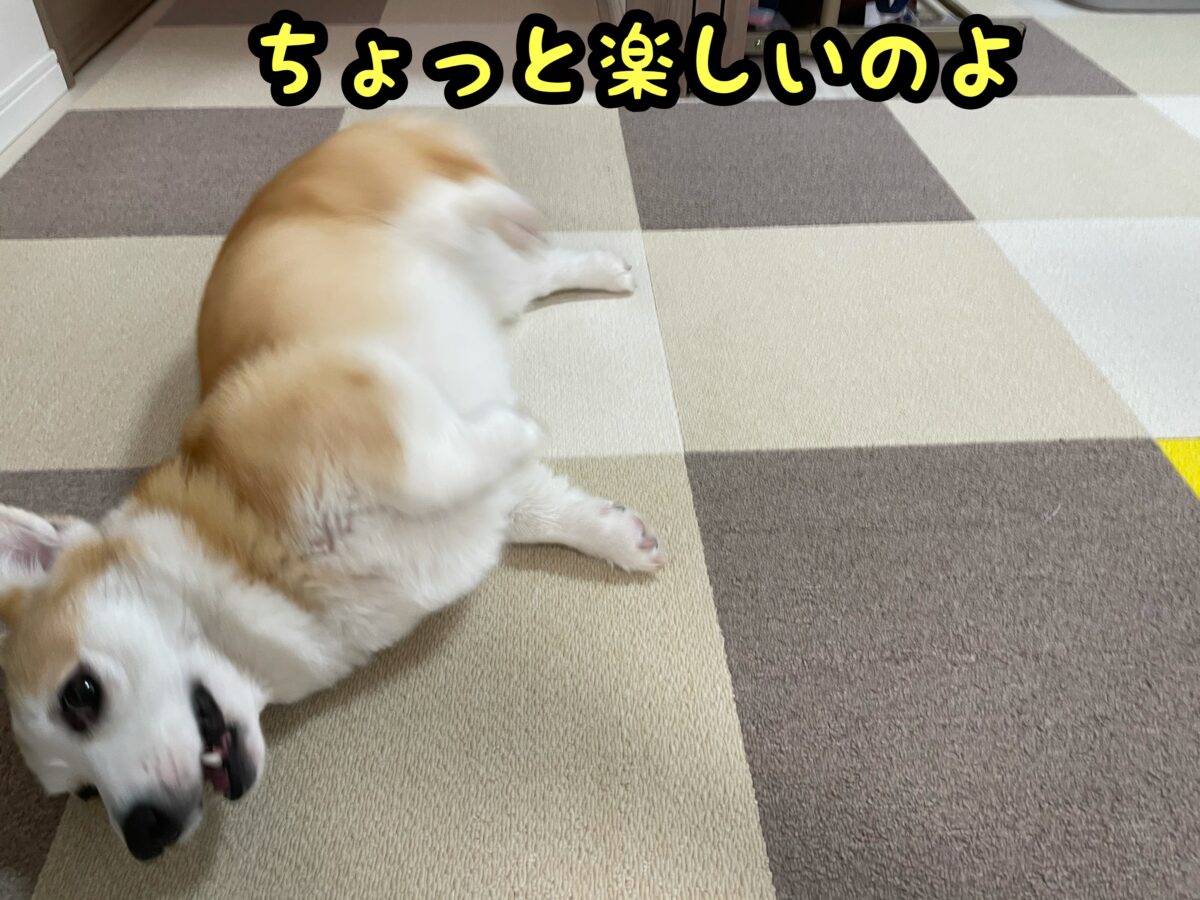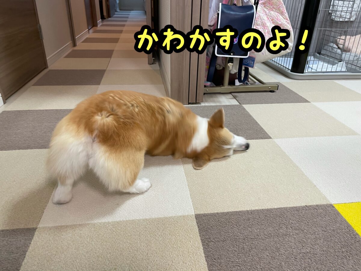 さて、コーギーむぎちゃんはシャンプー後のルーティンがもう一つあるようです(/・ω・)/