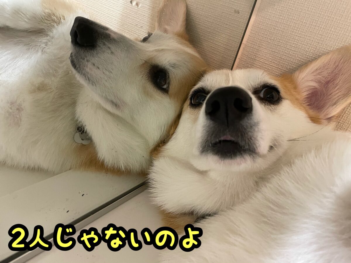 鏡の精でむぎちゃんが二匹いるみたいだね(/・ω・)/
