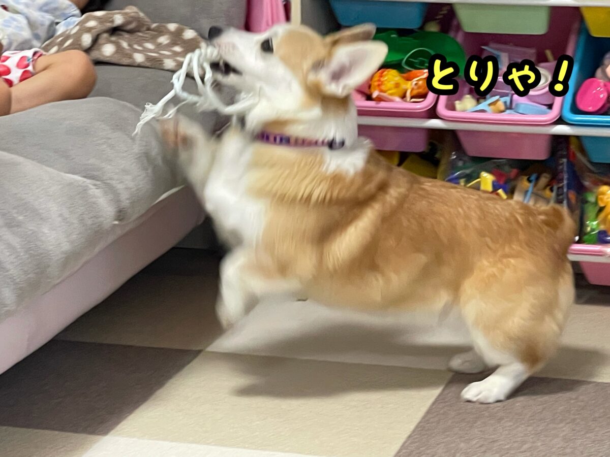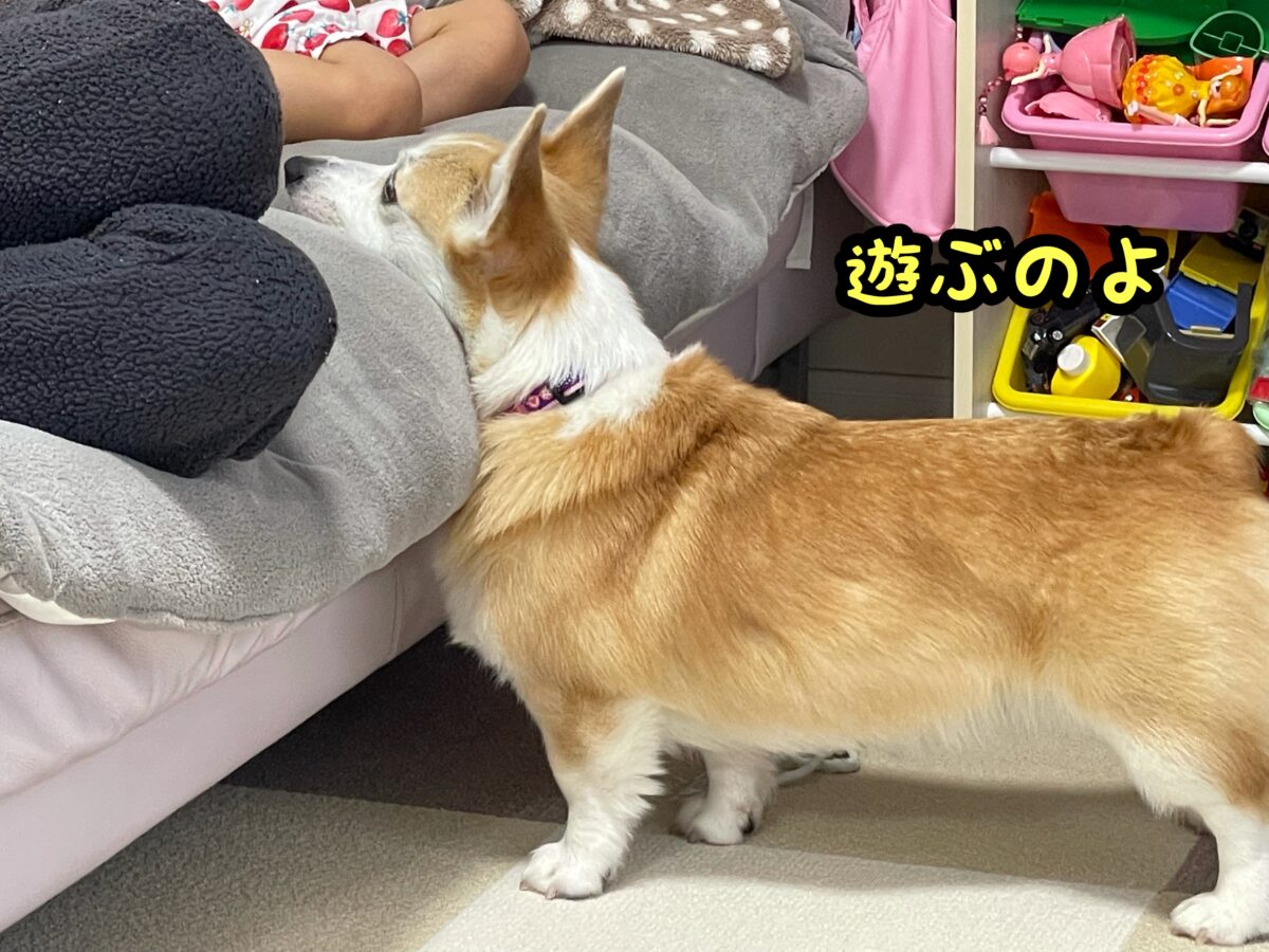 さて、コーギーむぎちゃんは譲歩するようです(/・ω・)/