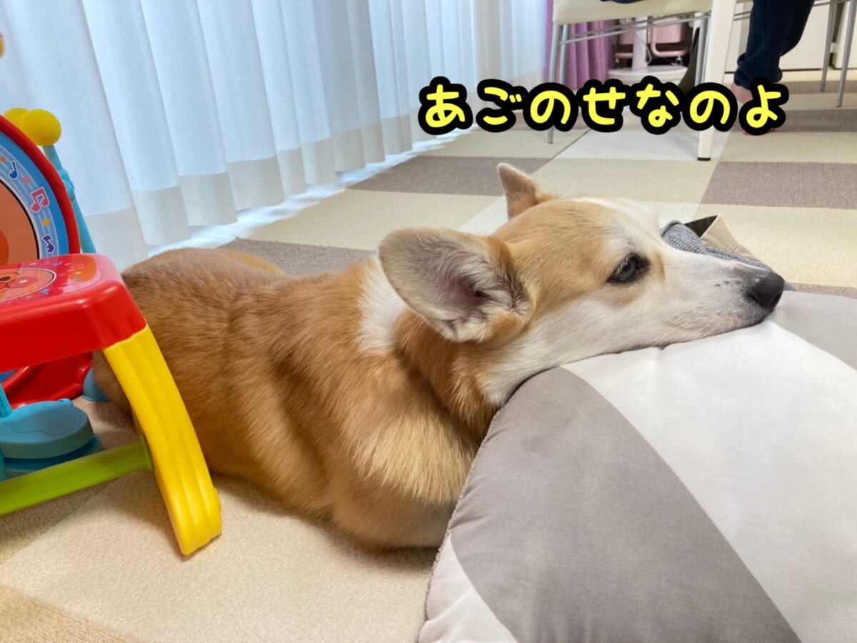 さて、コーギーむぎちゃんはアゴが重いようです(/・ω・)/