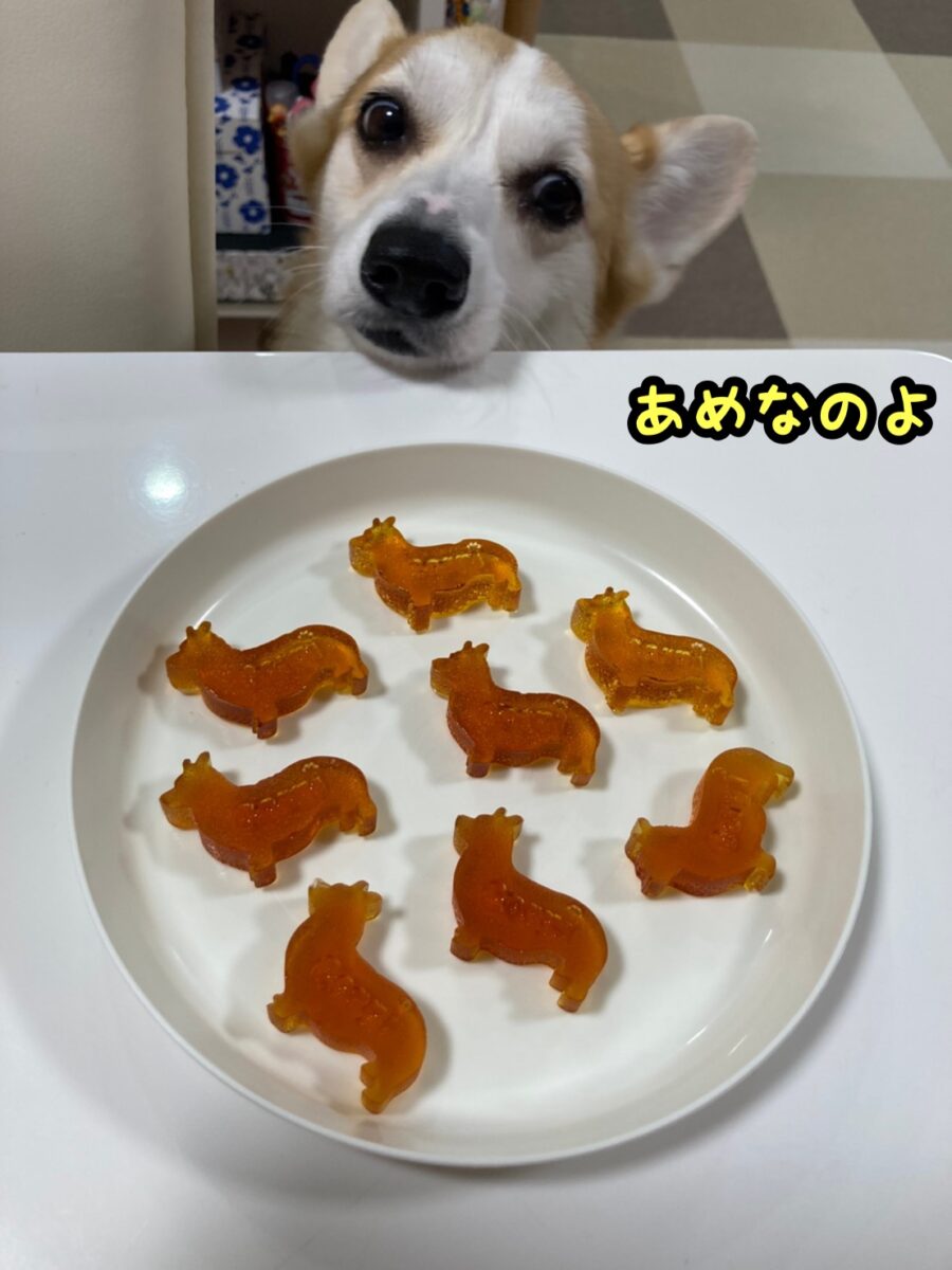 さて、コーギーむぎちゃんはコーギー飴を見つけたようです(/・ω・)/
