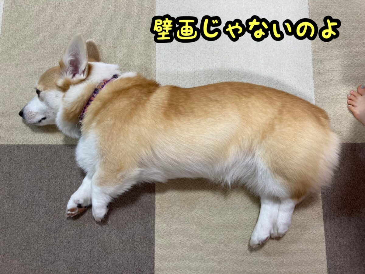 壁画みたいに地面にへばりつくむぎちゃん(/・ω・)/