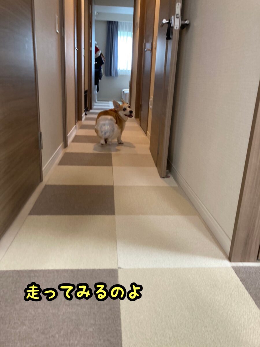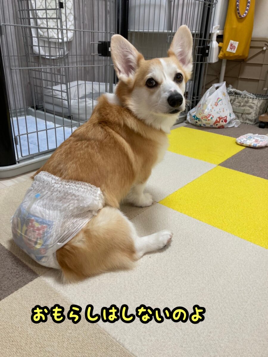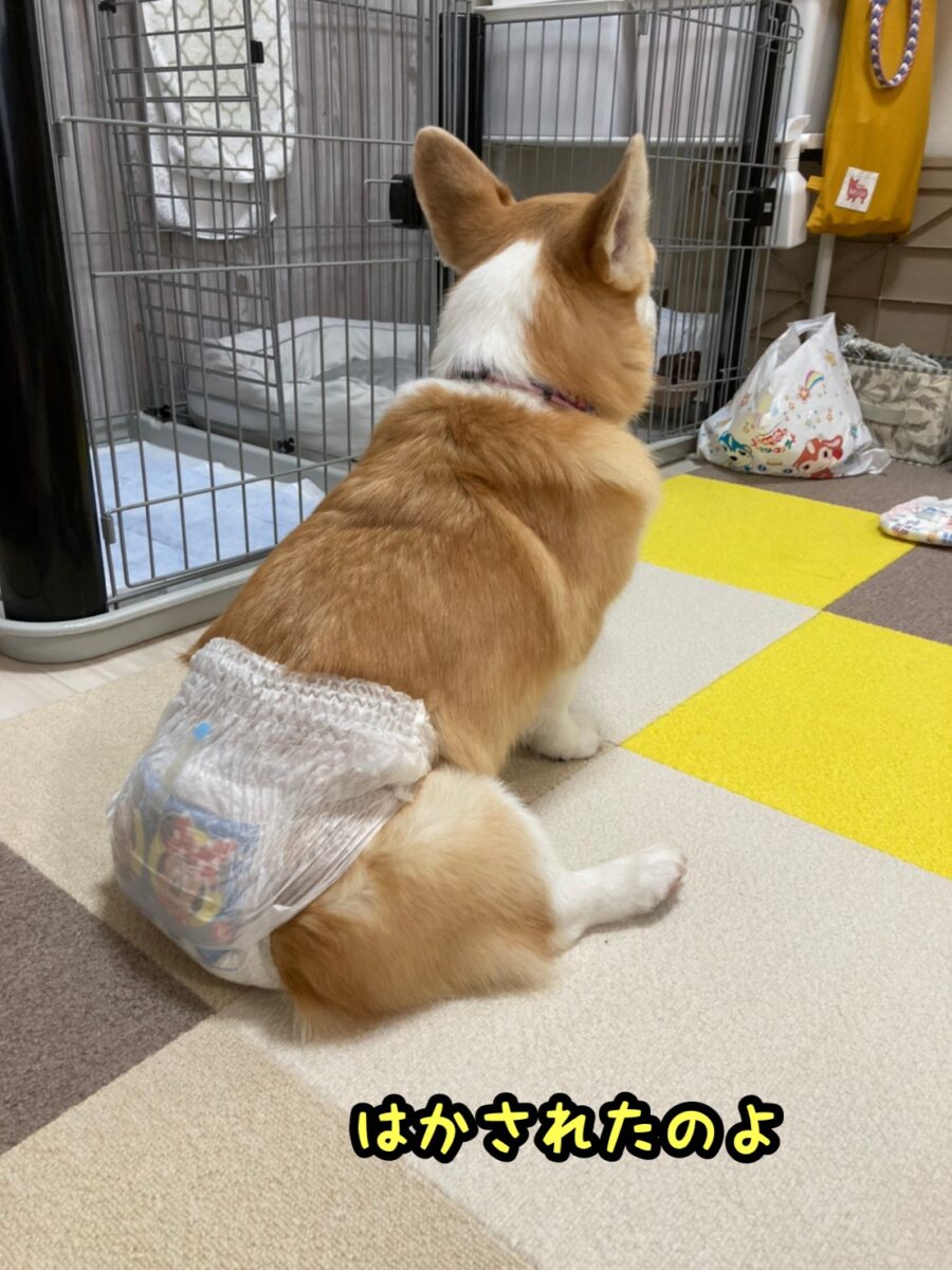 さて、コーギーむぎちゃんはおむつをはいてみたようです(/・ω・)/