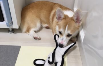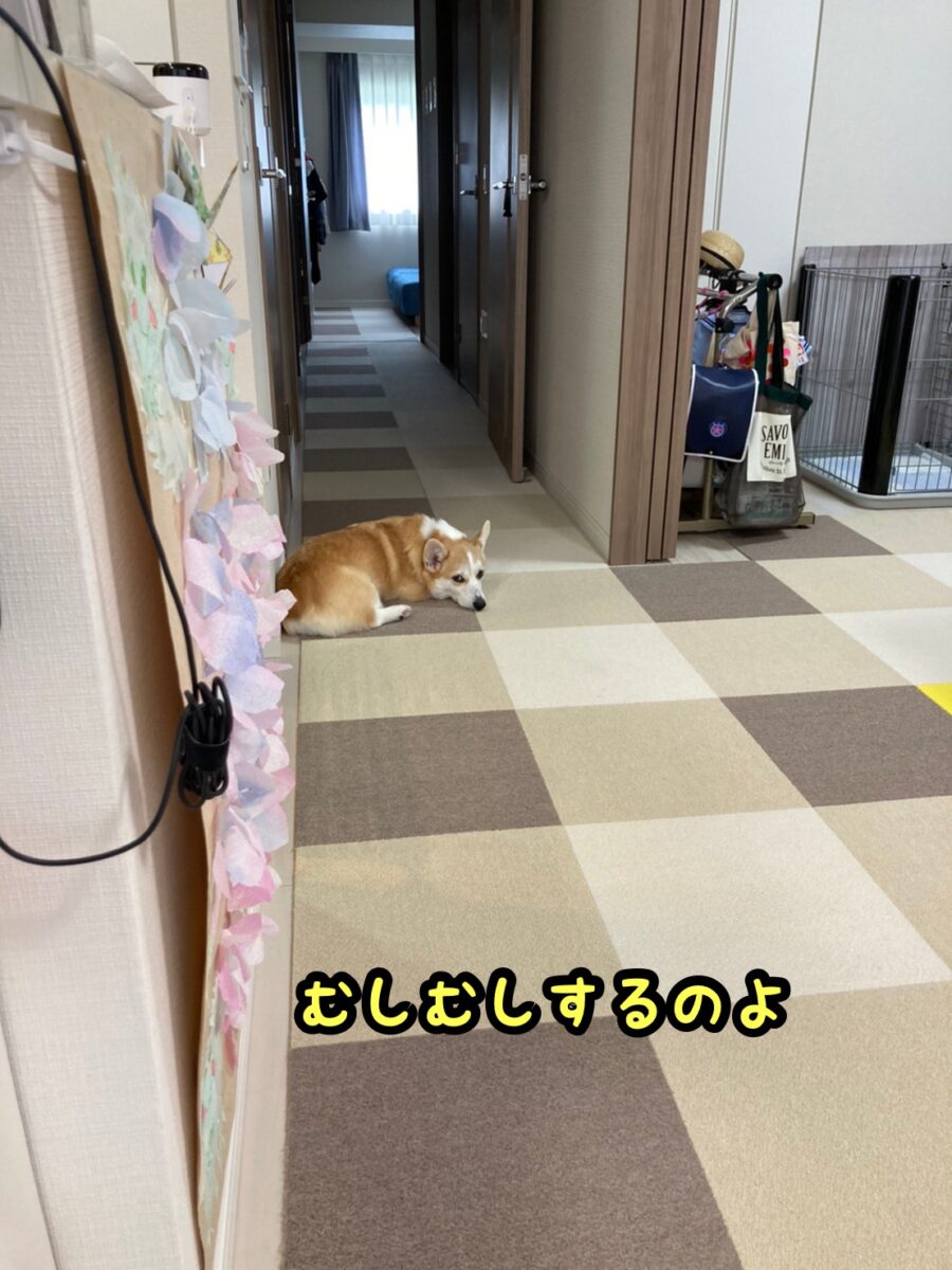 さて、コーギーむぎちゃんはハイブリッドにしてもうらようです(/・ω・)/