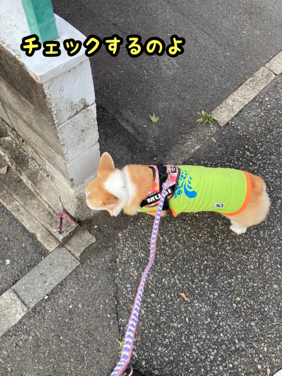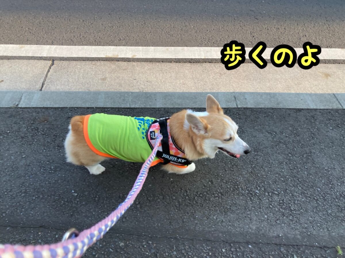 さて、コーギーむぎちゃんは今の時期の散歩のデメリットに気がついたようです(/・ω・)/
