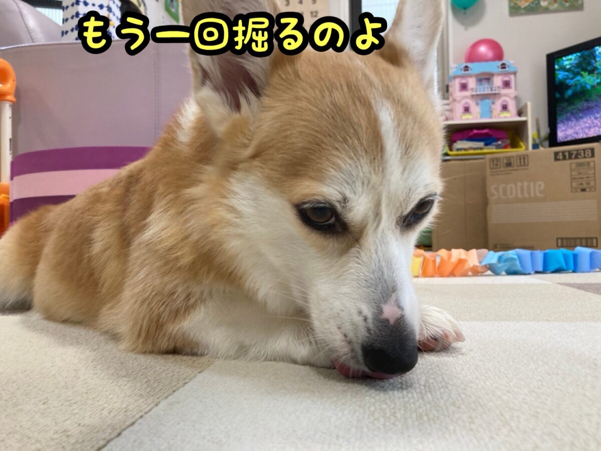 さて、コーギーむぎちゃんはホリホリスハスハするようです(/・ω・)/