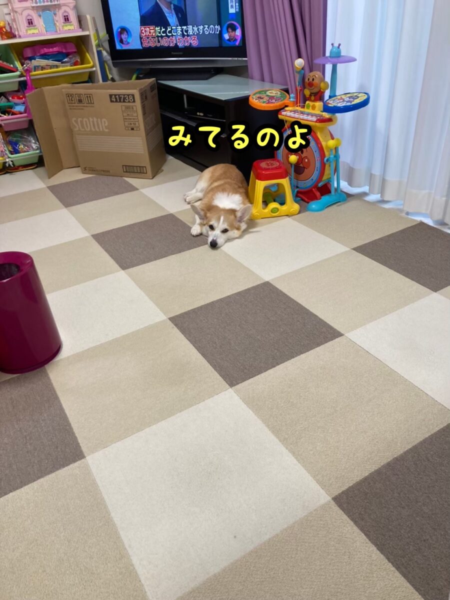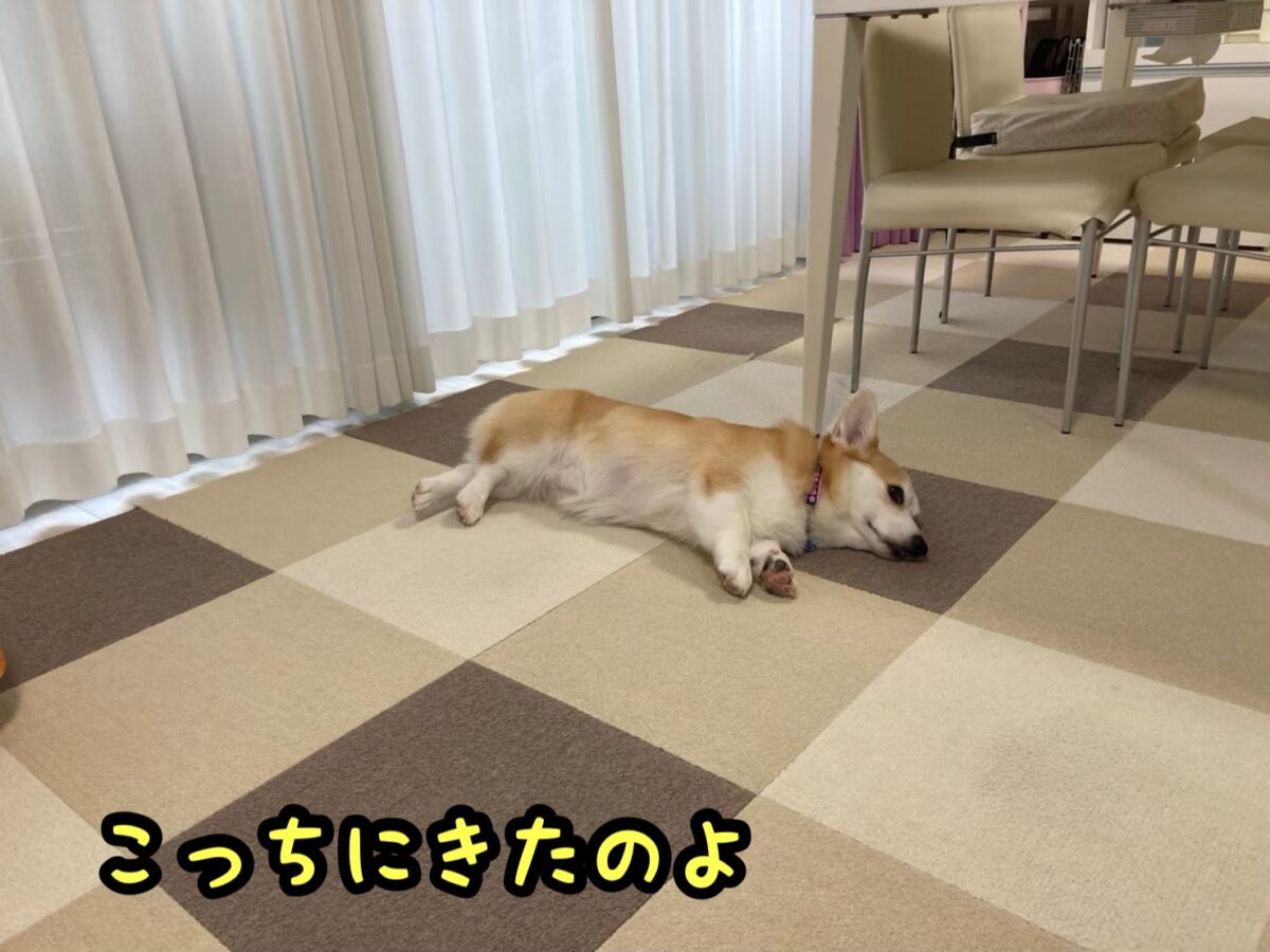 さて、コーギーむぎちゃんはじわりじわりと近づいてくるようです(/・ω・)/