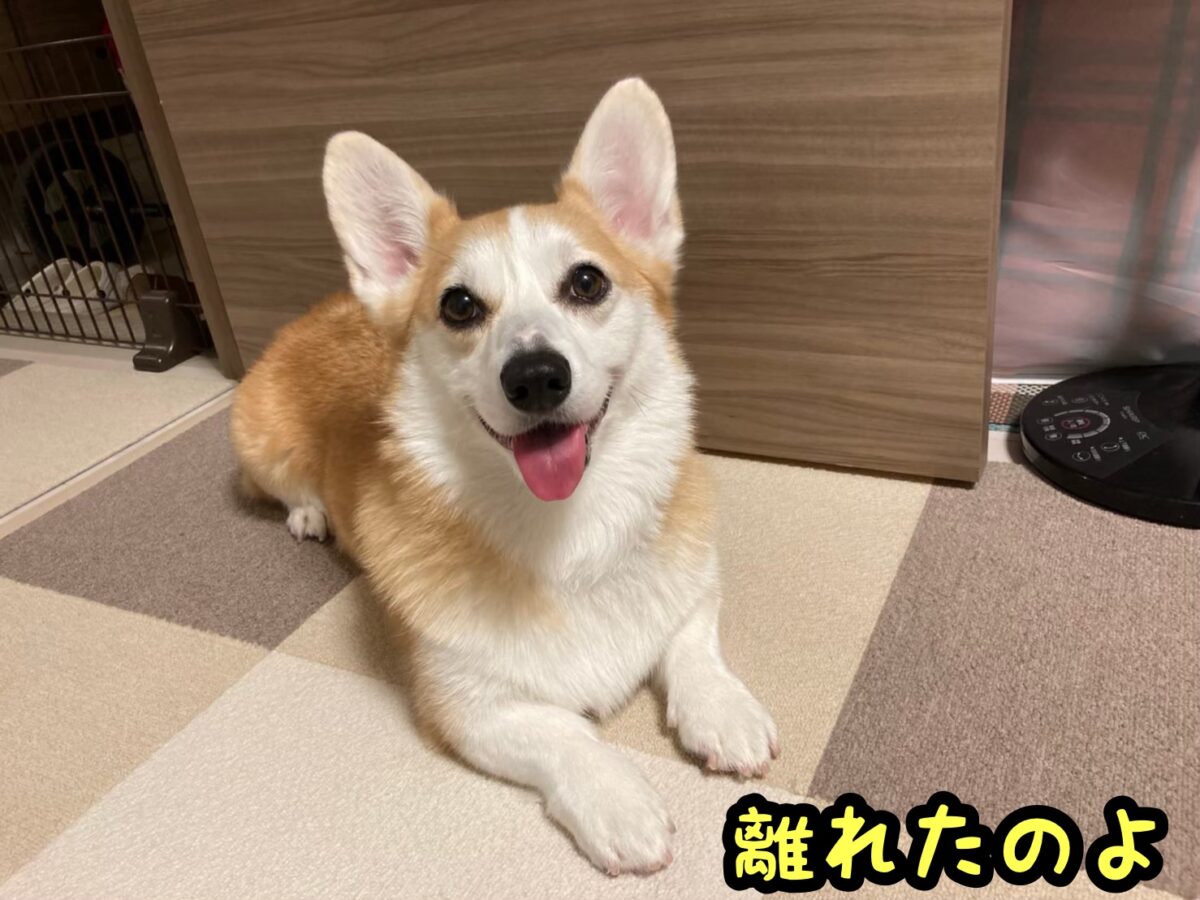 さて、コーギーむぎちゃんは微妙な隙間があるようです(/・ω・)/