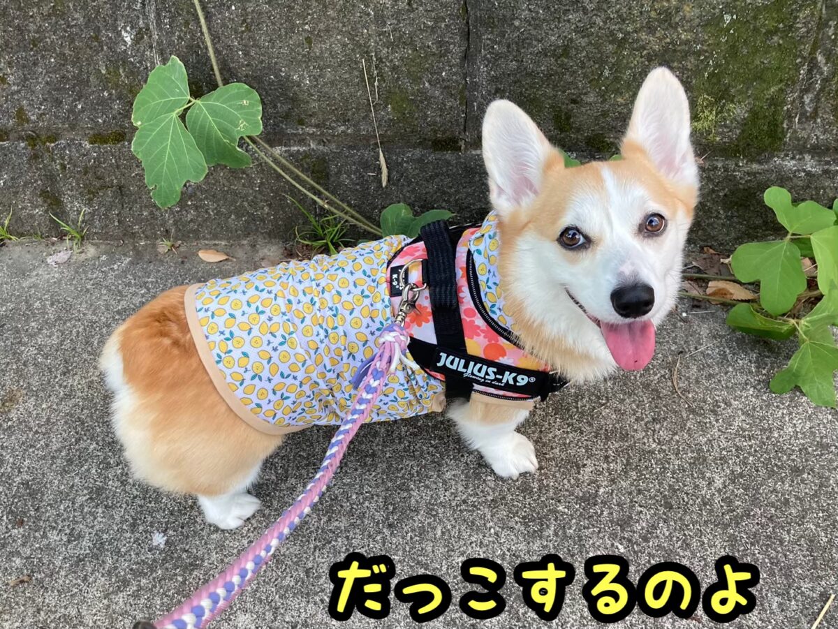 さて、コーギーむぎちゃんはなにかあると思っているようです(/・ω・)/