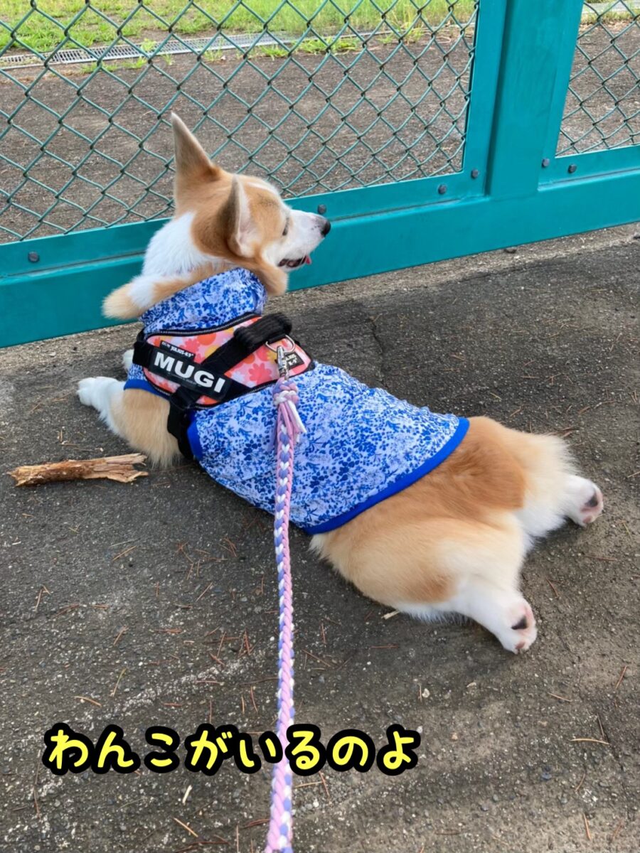 さて、コーギーむぎちゃんはのんびり散歩をするようです(/・ω・)/