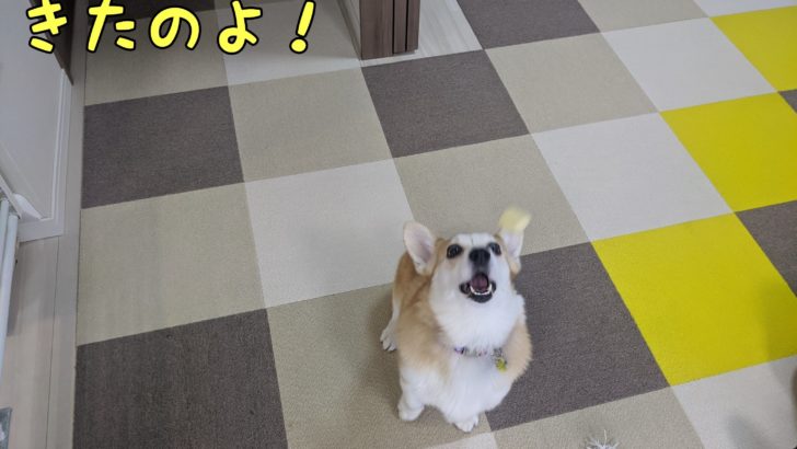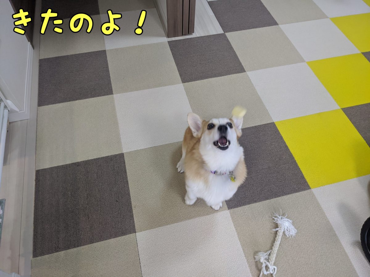 さて、コーギーむぎちゃんはナイスキャッチしたいようです(/・ω・)/