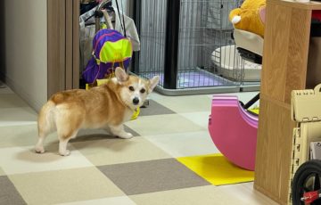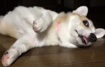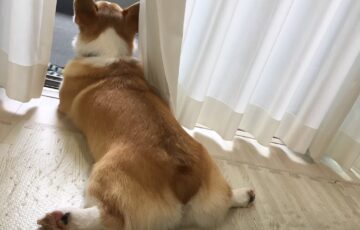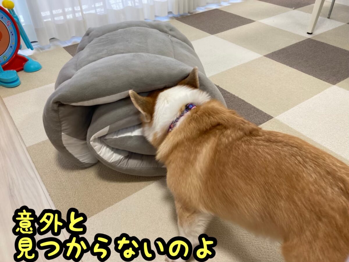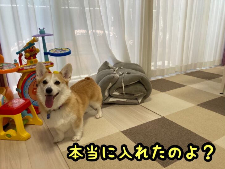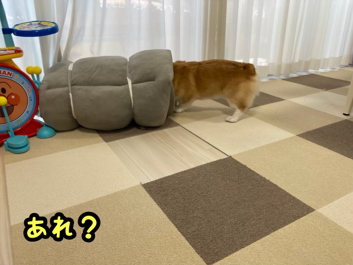さて、コーギーむぎちゃんは疑いだしたようです(/・ω・)/