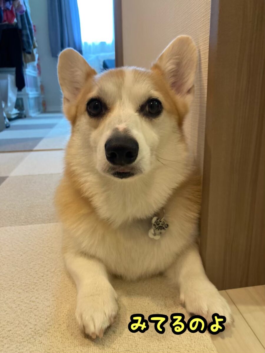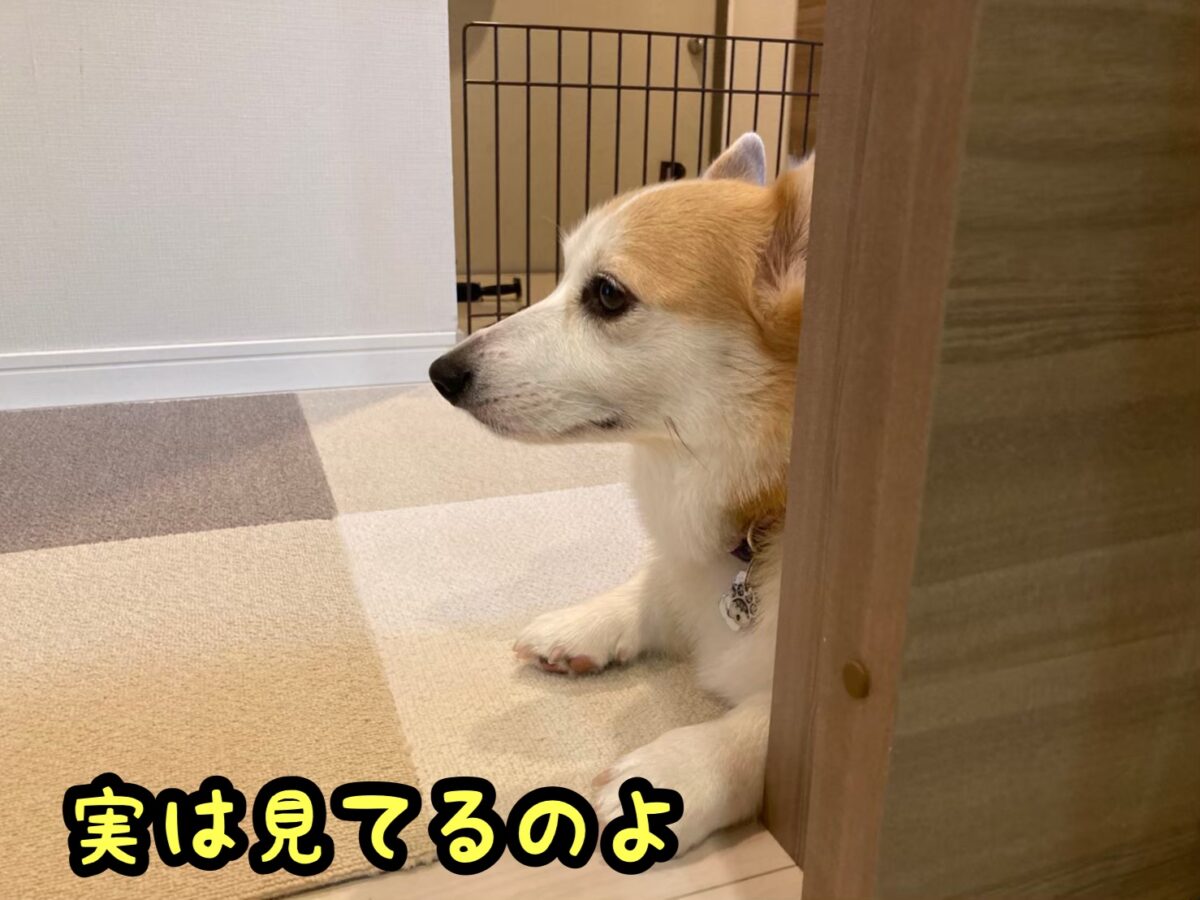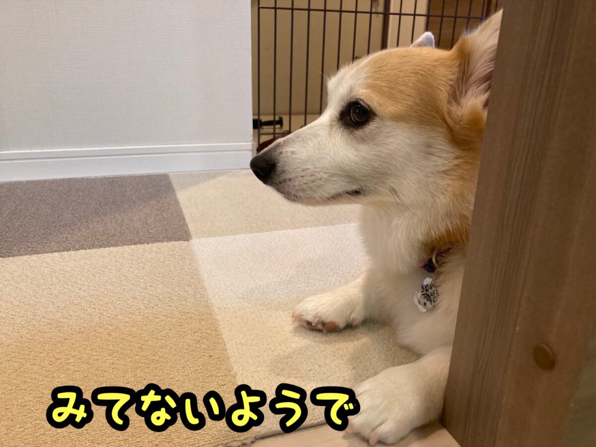 さて、コーギーむぎちゃんは見ていないようで見ているようです(/・ω・)/