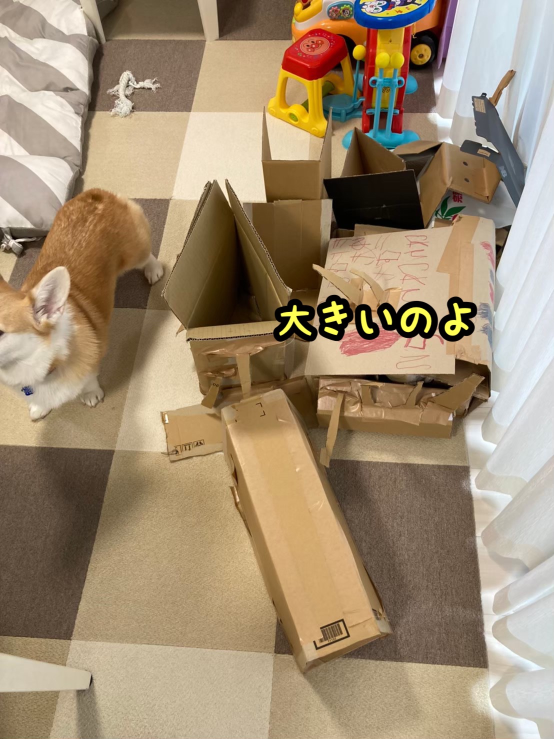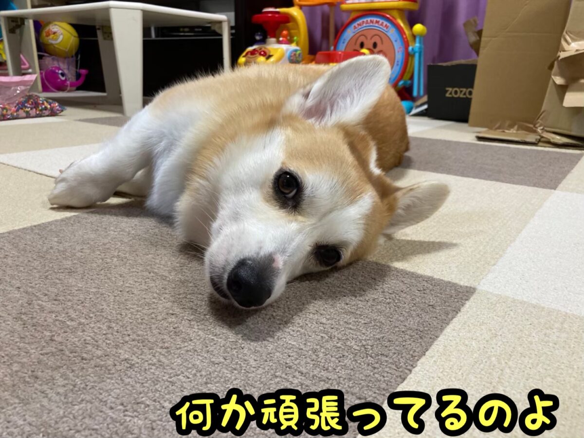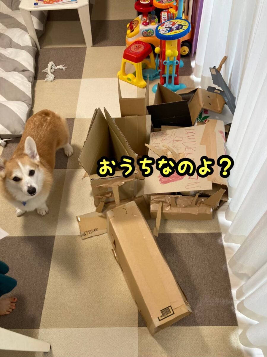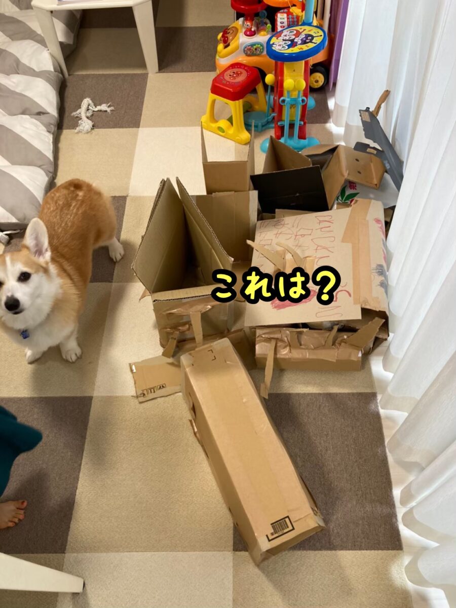 さて、コーギーむぎちゃんは秘密基地を見ているようです(/・ω・)/
