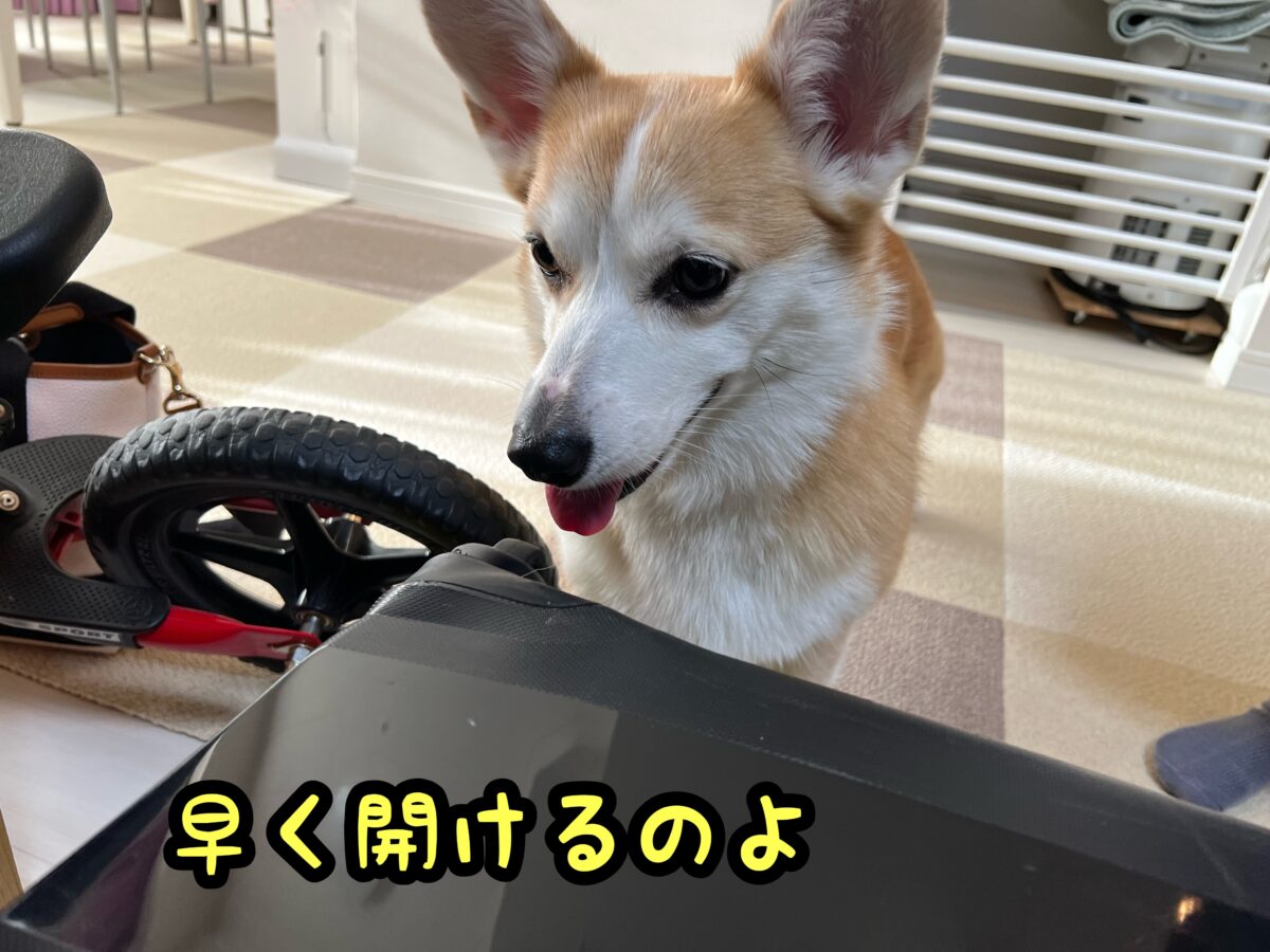 さて、コーギーむぎちゃんはあけてほしいようです(/・ω・)/