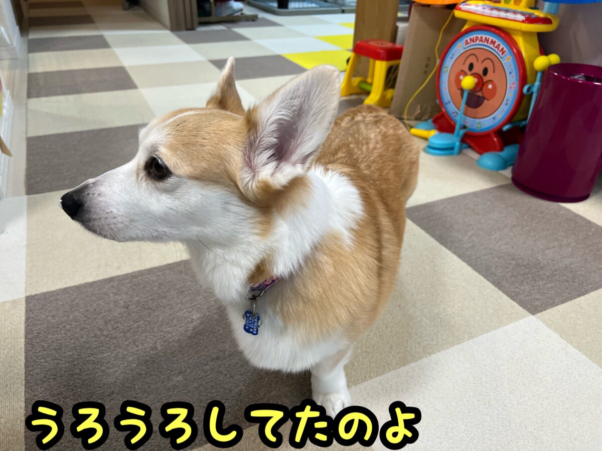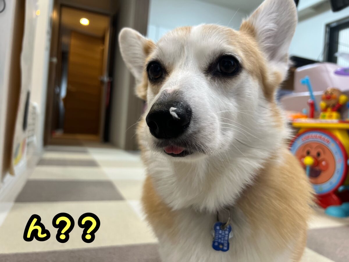 さて、コーギーむぎちゃんはごみがついているようです(/・ω・)/