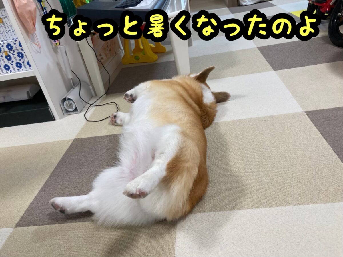 床暖房が暖かいけど、暑くなるから定期的にごろごろするむぎちゃんでした(/・ω・)/
