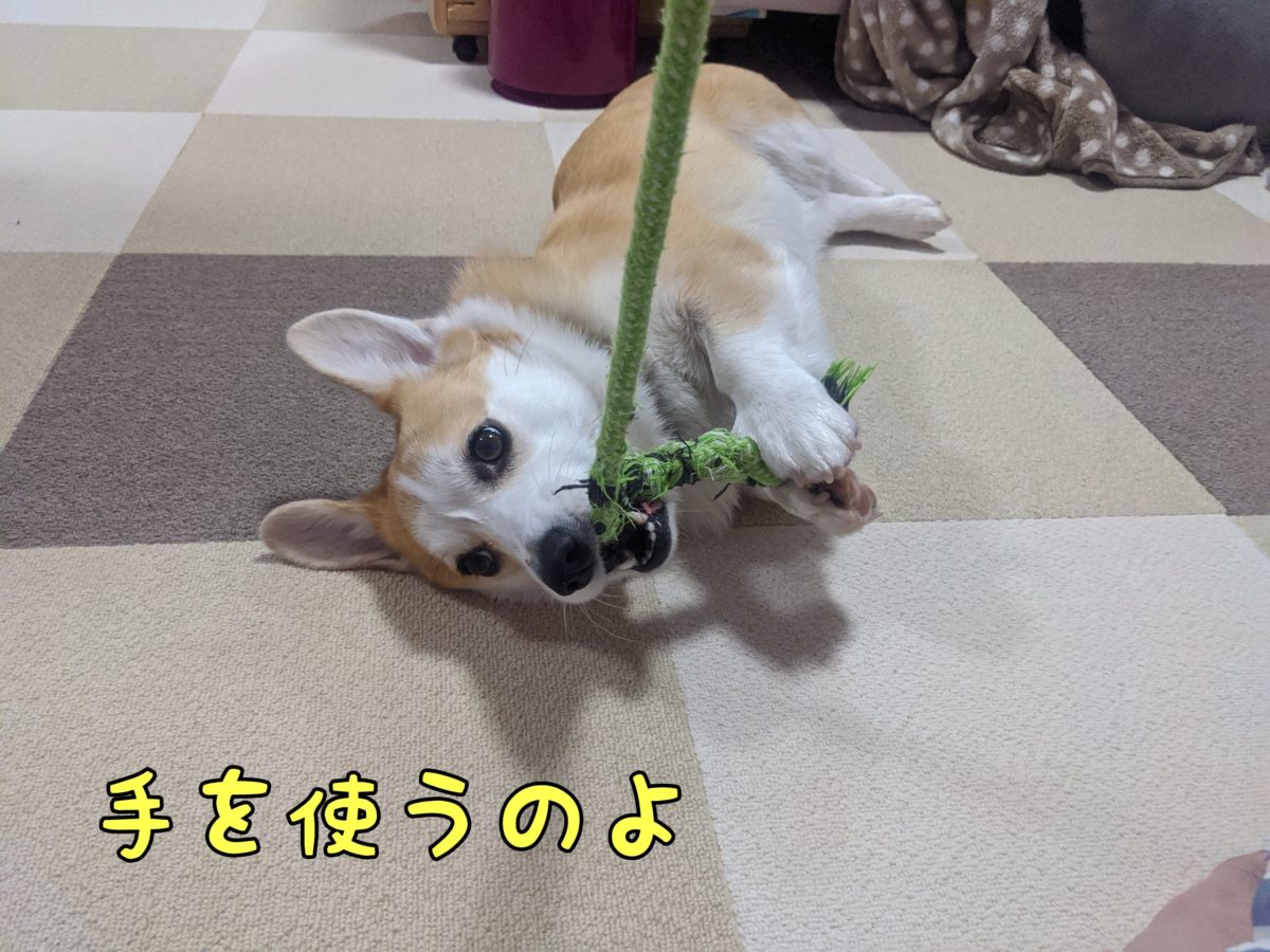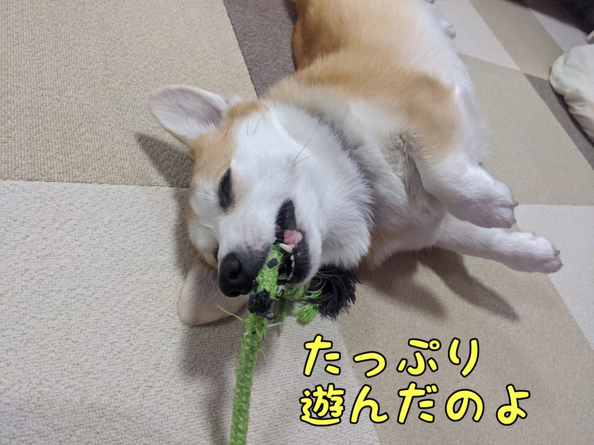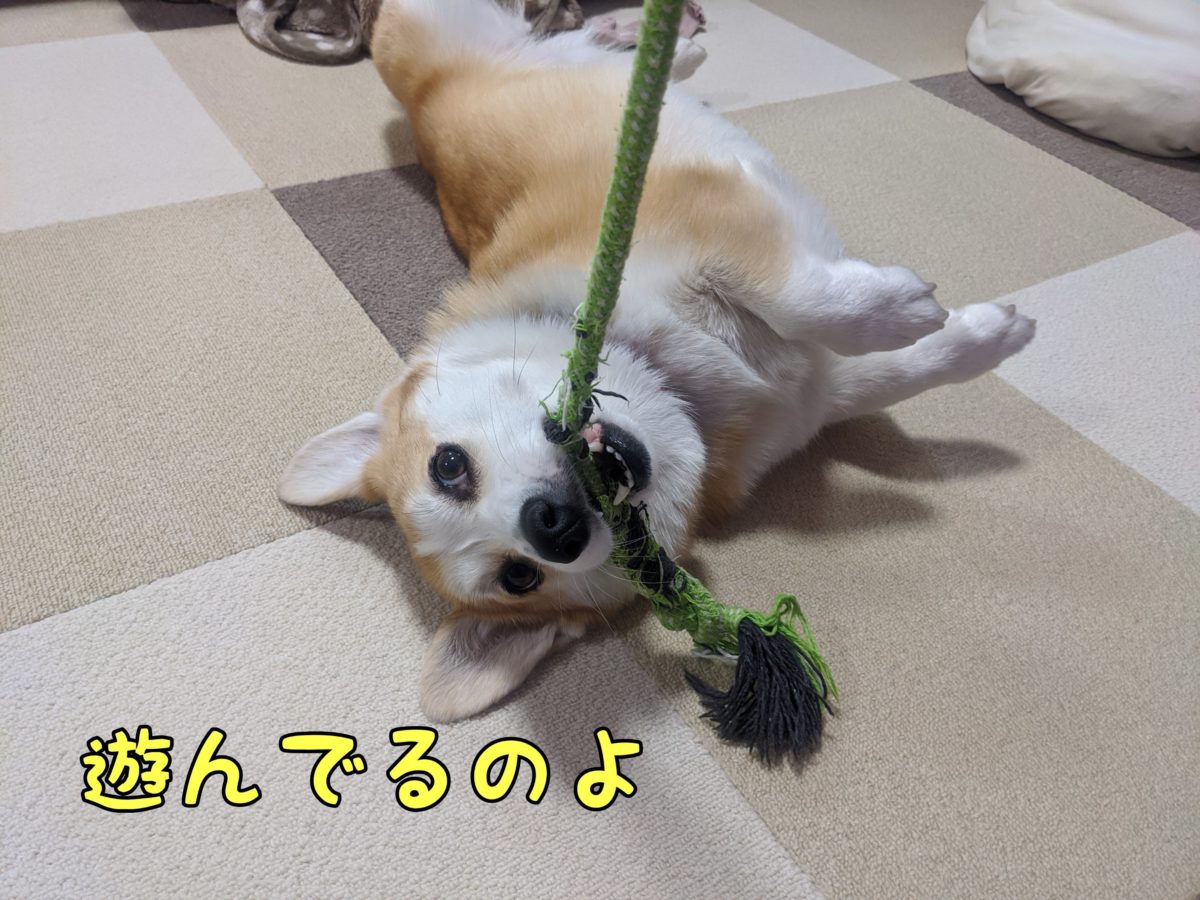むぎちゃん、引っ張るのに飽きたら寝転がります(・Д・`)