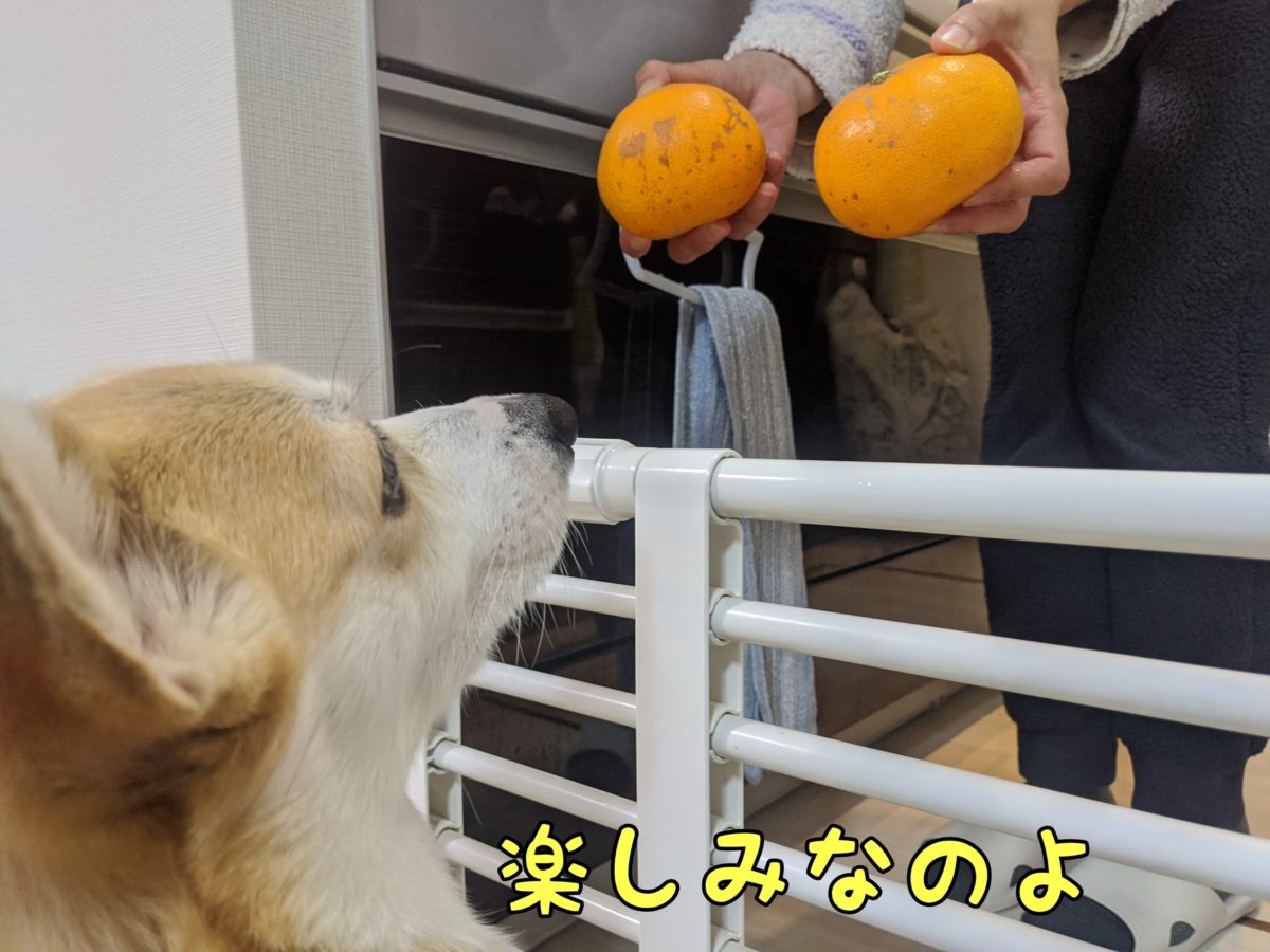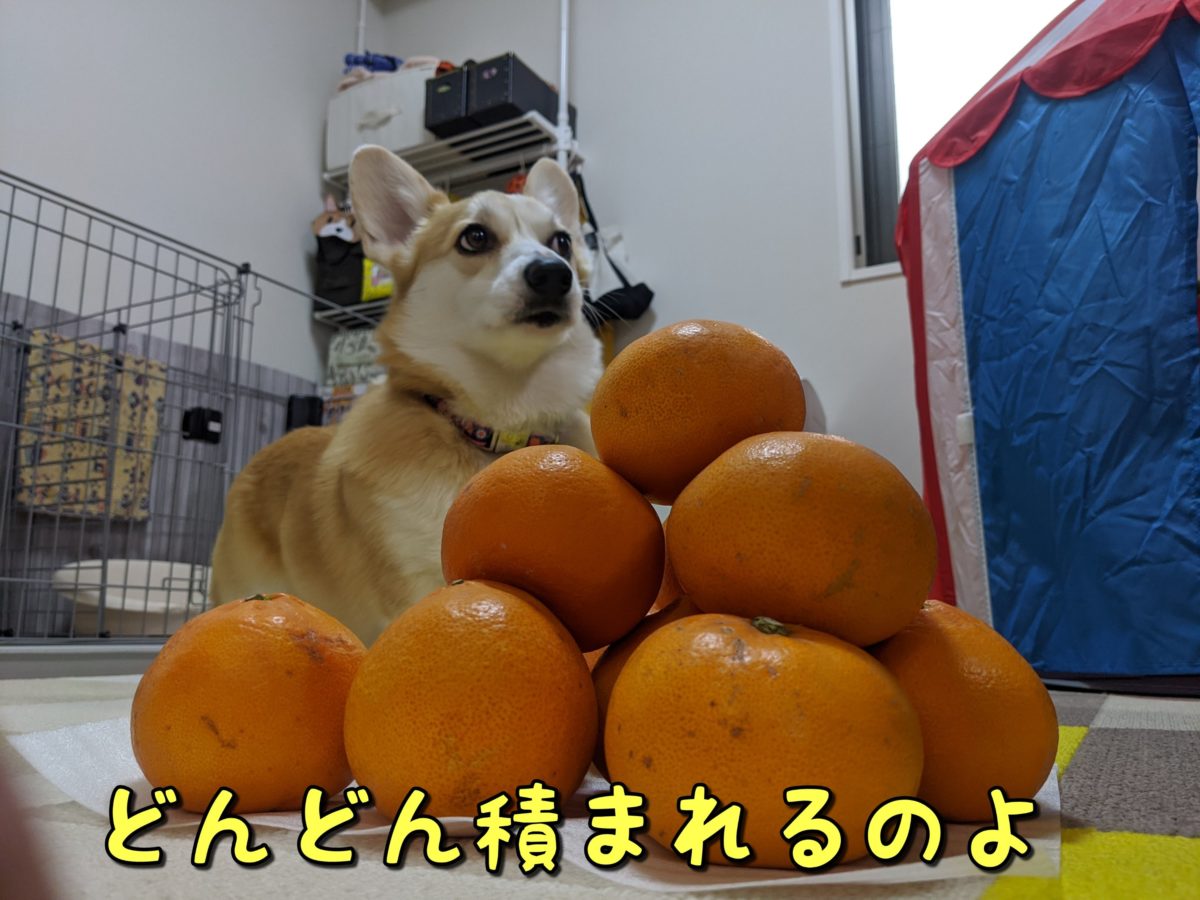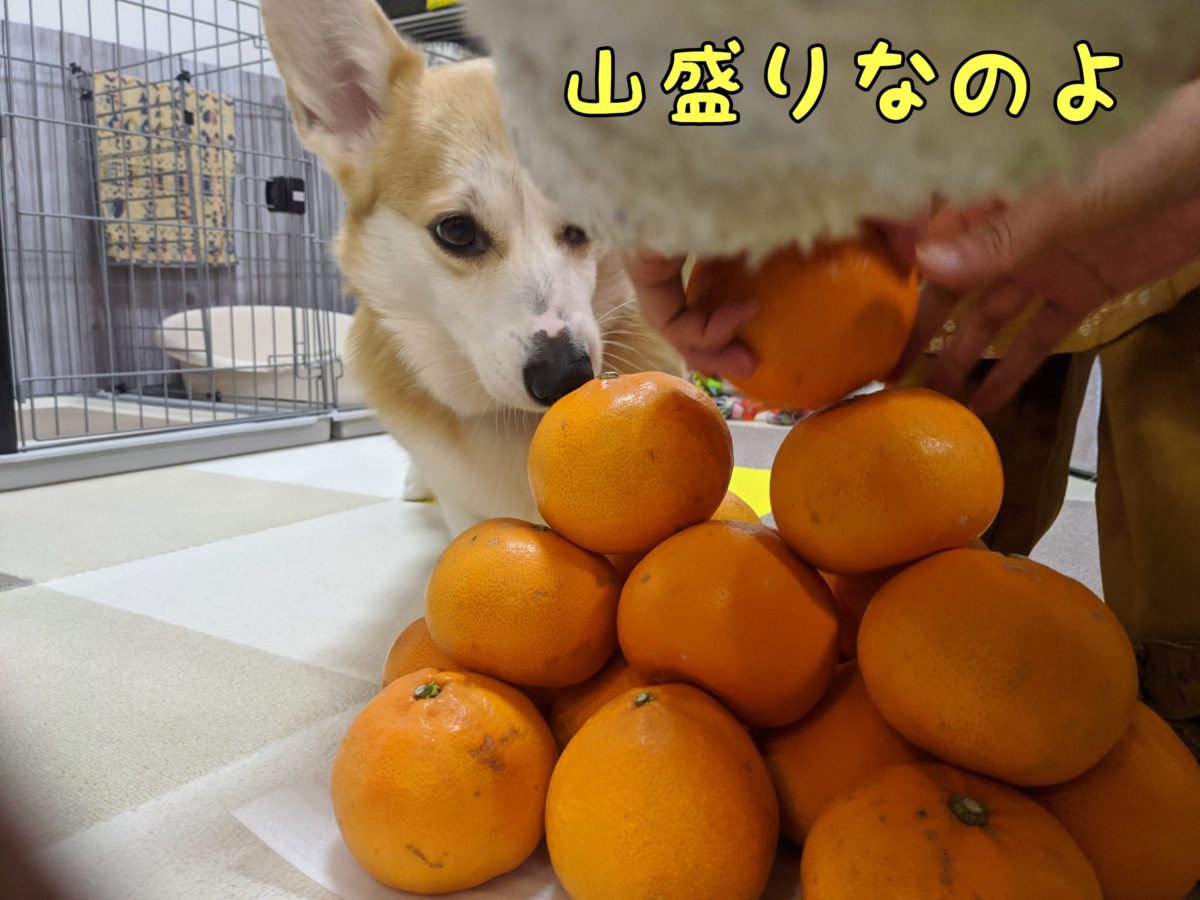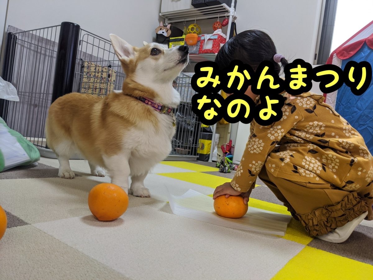 さて、コーギーむぎちゃんはミカンに大興奮なようです(/・ω・)/
