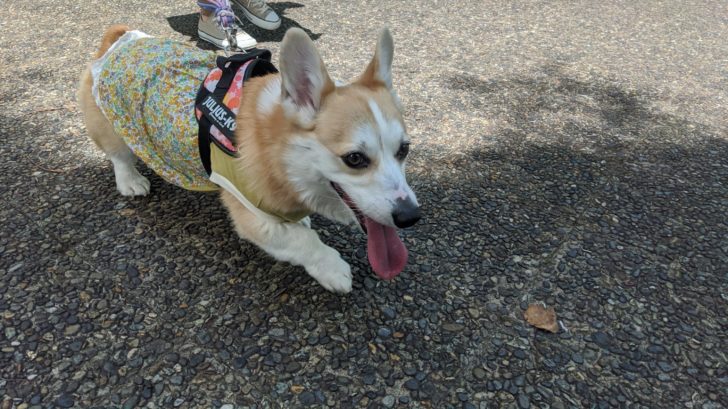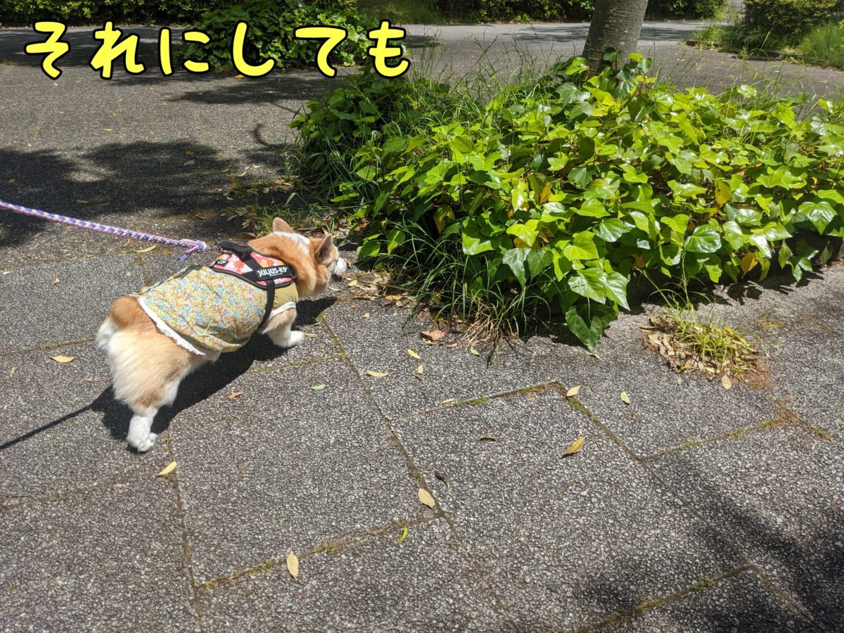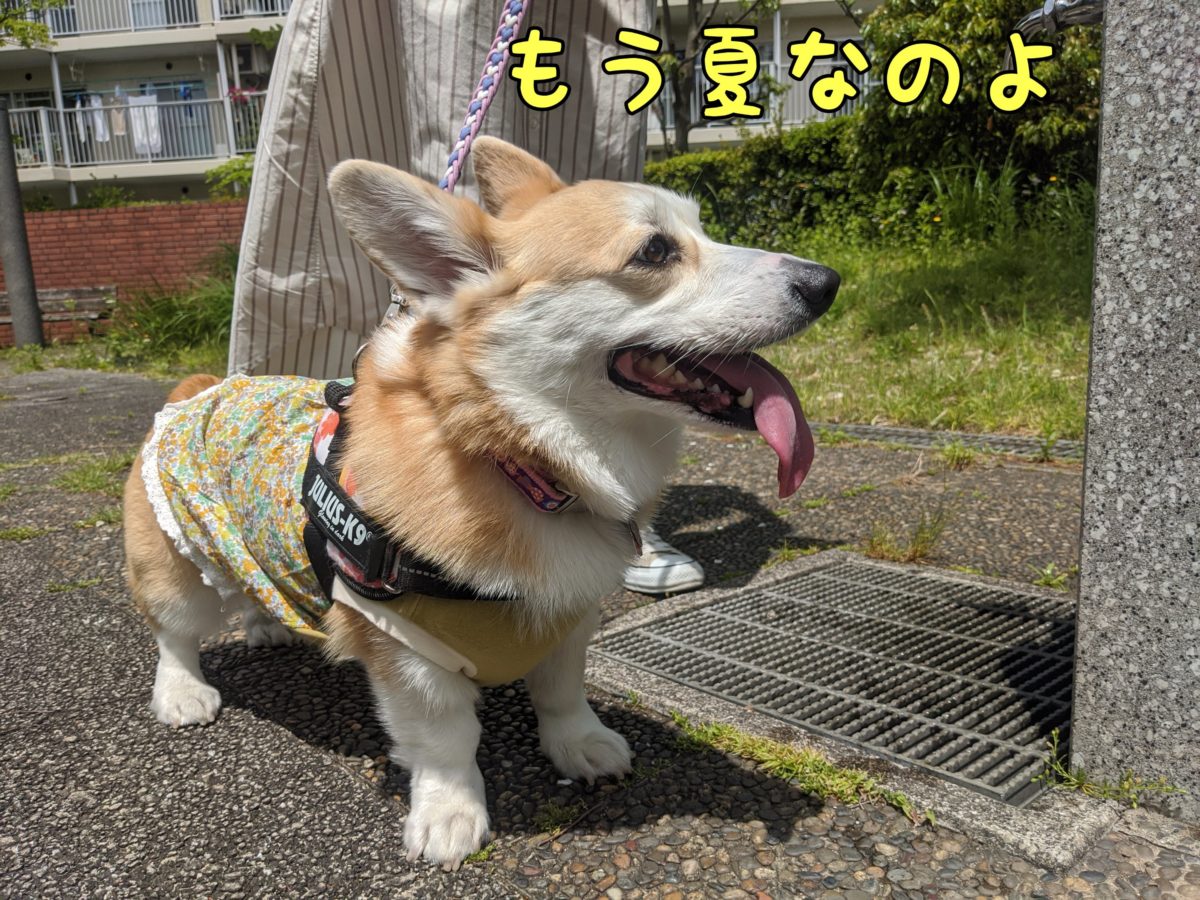 さて、コーギーむぎちゃんは初夏を感じたようです(/・ω・)/
