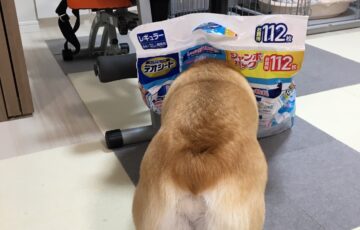 さて、コーギーむぎちゃんはとりあえずつけとくようです(/・ω・)/
