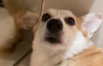 コーギーむぎちゃん ワタシま~つ~わ♪